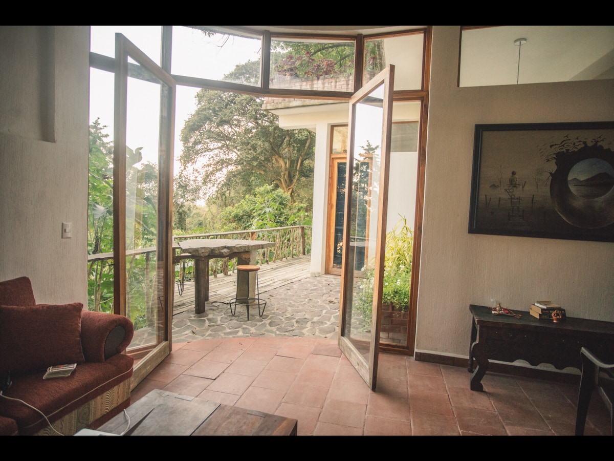 Our beautiful space is homey and comfortable, decorated with beauty, harmony and attention to details. We are nestled up in Barrio Dos, a 5 minute tuk tuk ride from the tourist center and restaurants or 15 minute walk. The view of the lake and volcanoes are breathtaking. Please be aware that since we are located in the jungle of Guatemala you may encounter insects, spiders or scorpions in your room but they all are harmless to humans. We are looking forward to hosting you 🙏🏼