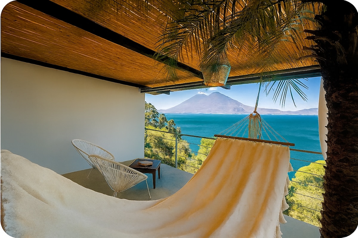 Welcome to our extraordinary A-Frame nestled in the enchanting Lake Atitlan, Guatemala. Indulge in a retreat where awe-inspiring beauty & tranquility unite. Witness breathtaking panoramas of majestic volcanoes & the glistening lake, offering a backdrop of natural wonders like no other. Explore the captivating Mayan culture & traditions and return to your one-of-a-kind haven, where slick design & modern comfort harmoniously coexist. Unforgettable memories await you with us at AMATE Atitlan.