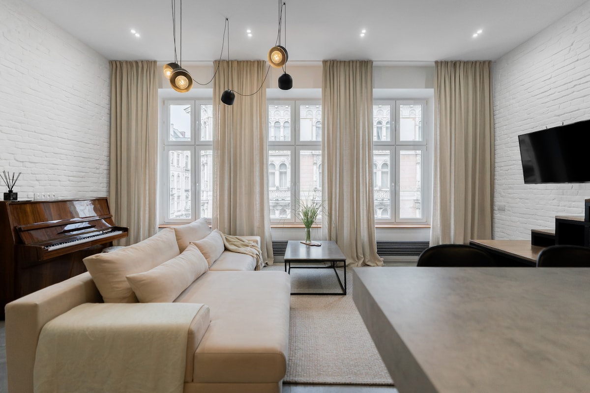 Atmospheric apartments with vaulted ceilings of old Austrian brick. The apartment is located on a very quiet street in the city center. At the same time, all the most interesting sights of the old Lviv, as well as cafes, restaurants and bars are just a 5-10 minute walk away.
