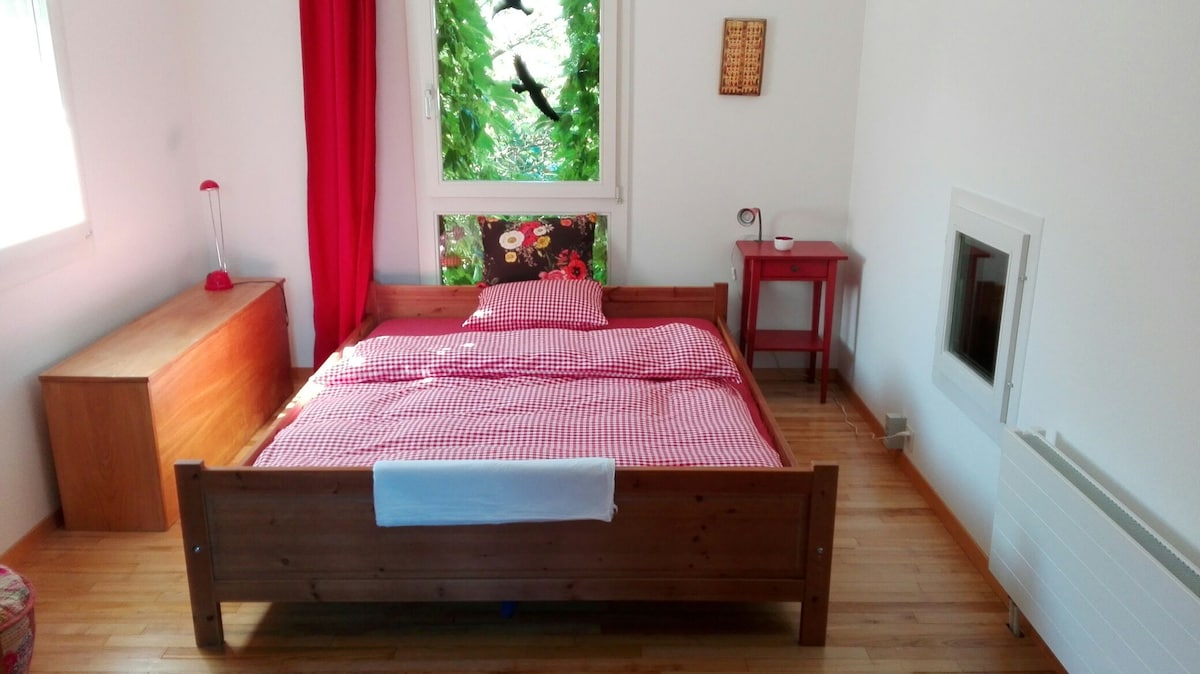grosses, helles und schönes Gästezimmer für 2 Personen und Doppelbett. Mit eigenem WC und Terassensitzplatz Dusche wird mit uns Bewohner geteilt. WLAN vorhanden. Kann aber ausgeschaltet werden, falls nicht gewünscht. Unser Haus befindet sich am Rande eines Naturschutzgebietes. Du kannst hier die Natur geniessen und dennoch bis Du mit dem Auto oder Zug in 10 Minuten in Basel. Der Bahnhof Dornach-Arlesheim befindet sich 5 Minuten zu Fuss von unserem Haus entfernt.