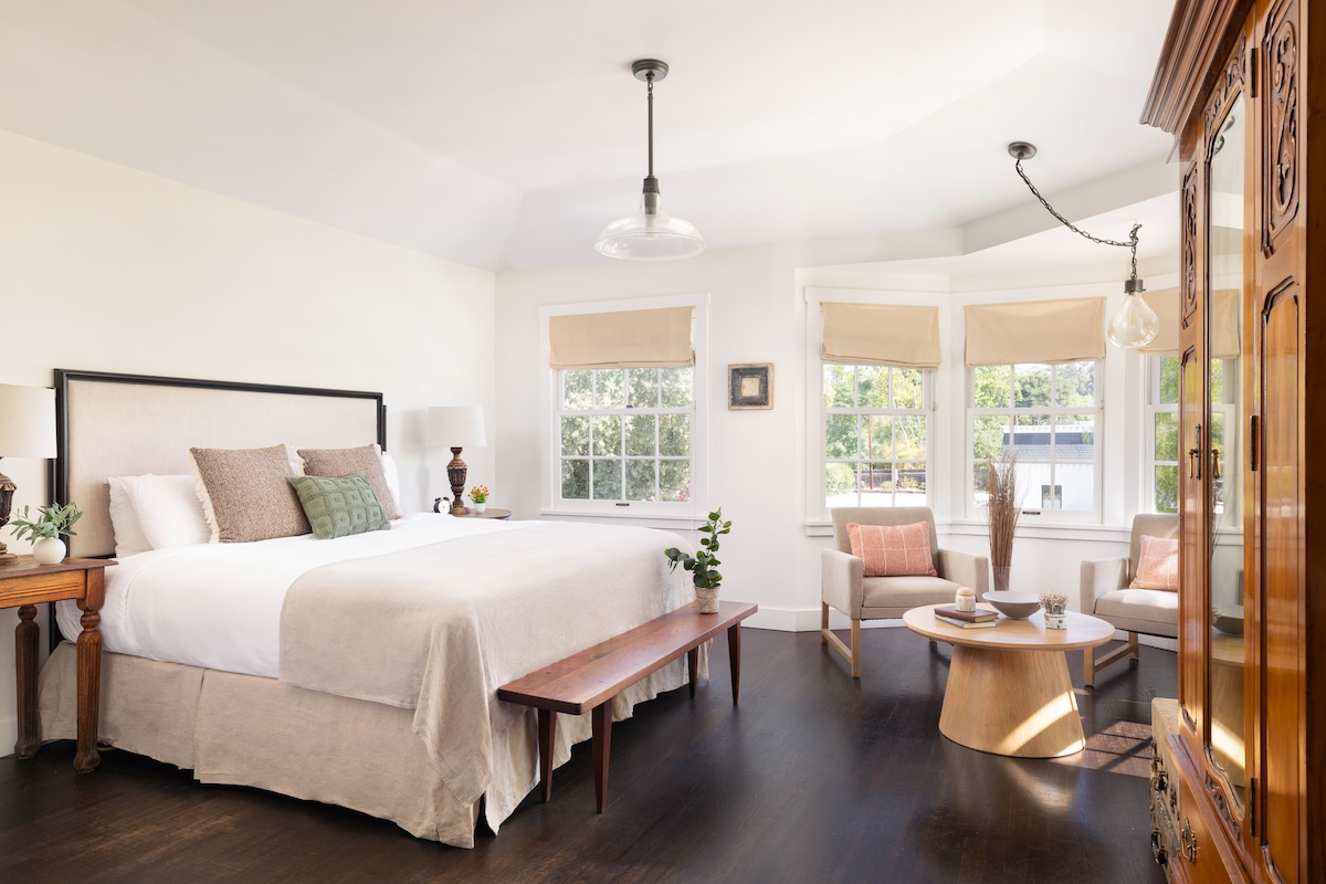 Newly renovated, minimalist-mod retreat located in the heart of the Santa Ynez Valley wine country. The Cottages at Bob’s Well Bread Bakery are perfect for food and wine tourists, or anyone looking to escape big city life and discover some small town charm. Tastefully decorated bedroom, living room, kitchenette and bathroom with complimentary Malin+Goetz toiletries. Your stay includes a complimentary coffee and pastry in our bakery (Thurs-Mon).