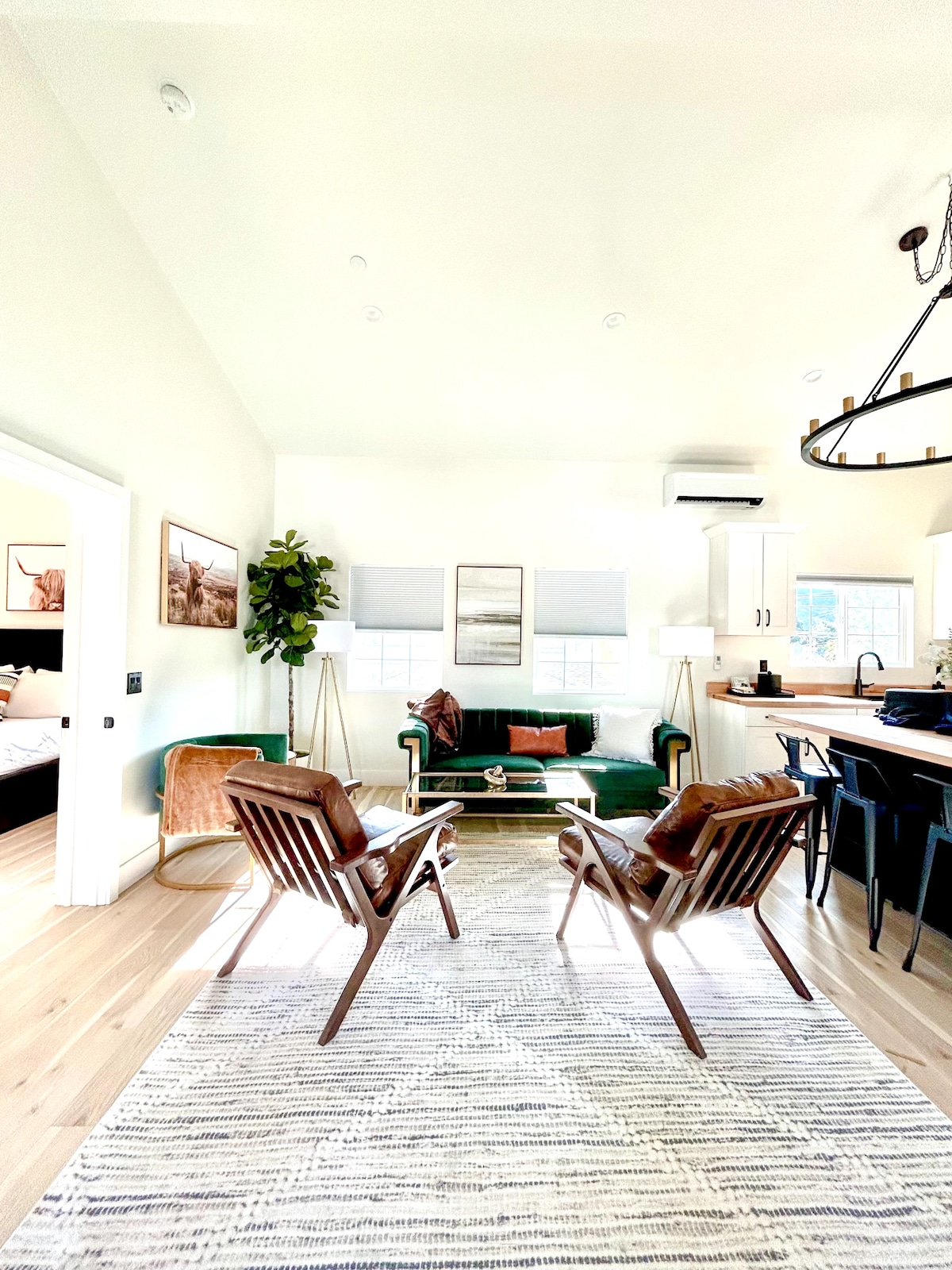 King bedroom in boutique hotel in the center of Solvang. This charming room is decorated in danish modern style and has a king bed, dining table & chairs, WiFi, flatscreen TV, coffee maker, mini fridge & a is a few steps from popular shops and restaurants.