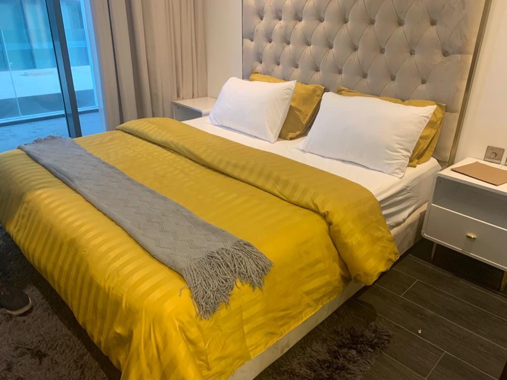 Kick back and relax in this cozy, stylish condo. The Condo 327 is a brand new sea + city view 1BR well-equipped apartment, with two private balconies w/outdoor swing, PS5, two smart TV’s (with Netflix), comfy feathered bedding, high-speed wifi, toiletries and fully-fitted kitchen on the 32nd floor of a gorgeous newly-built and secure building. Full access to all amenities; - Fitness center - Swimming pool - Sauna - Cinema - Squash court - 24/hr security.
