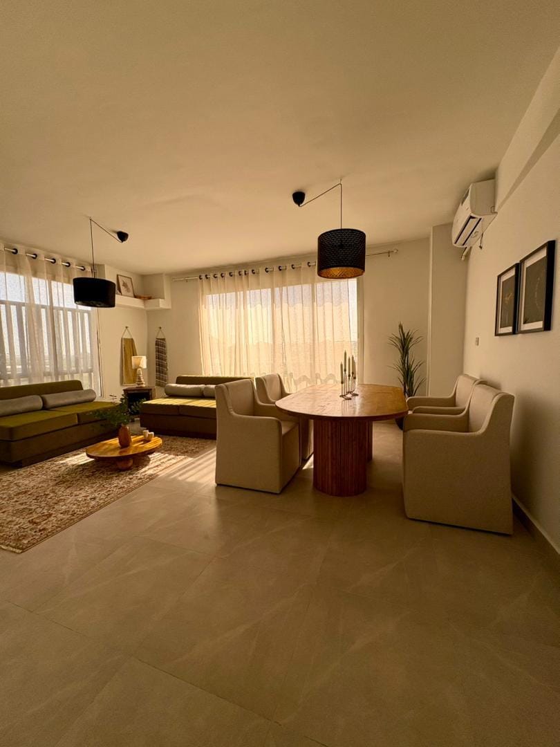 Just a 4-minute walk from the beach Just a 2-minute walk from Madina Beach Resort Welcome to your peaceful beachside escape in Mogadishu☀️🌊 Enjoy the entire first floor of a private three-story villa, offering space, privacy, comfort, and refreshing ocean views. The apartment features two comfortable bedrooms, each with a queen-size bed, designed to give you a restful night's sleep after a day in the sun.