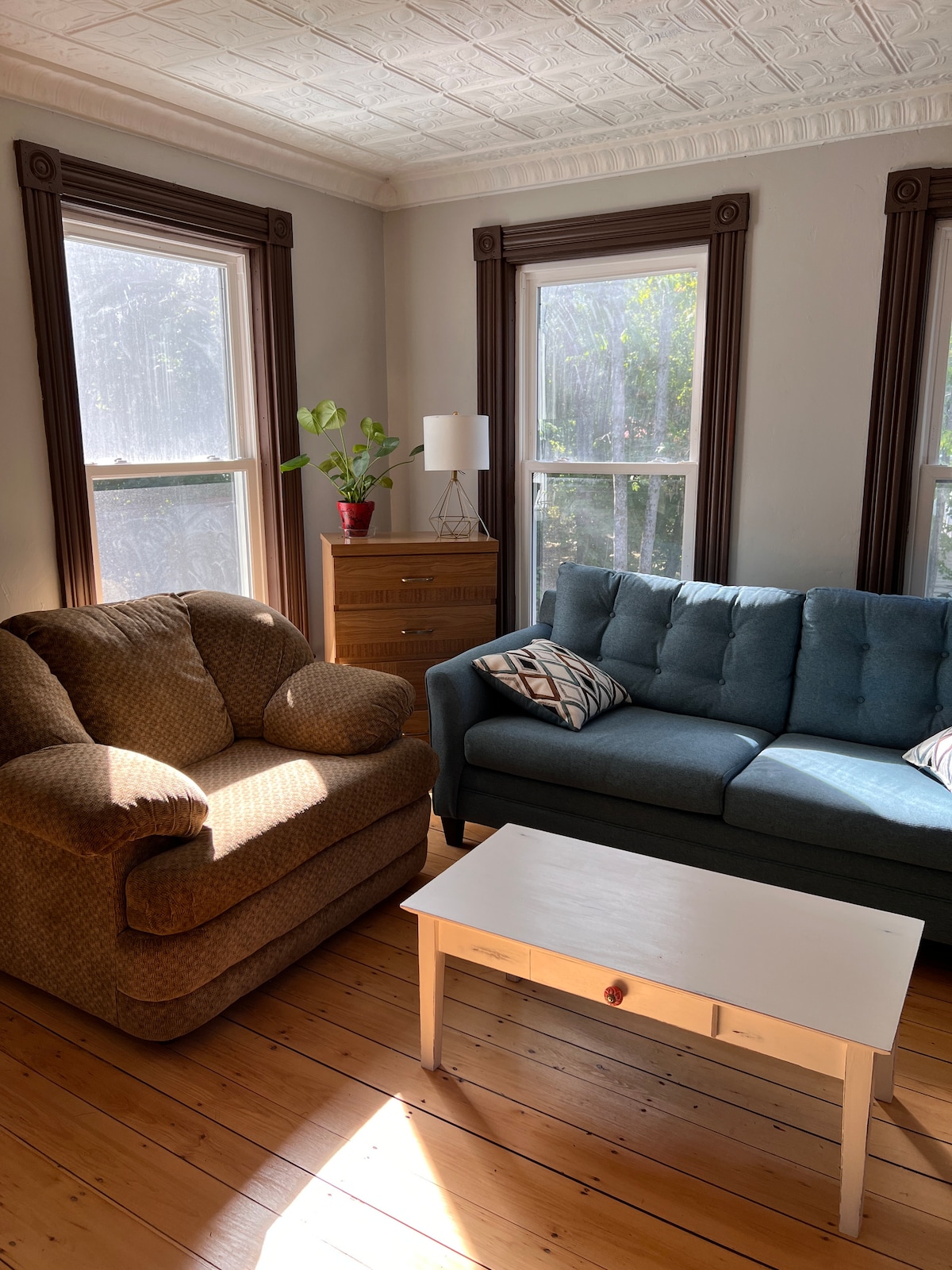 Welcome to our enchanting loft retreat! Our thoughtfully designed apartment offers a serene escape with a touch of sophistication. Ascend the spiral staircase to discover a cozy bedroom complete with a work space and reading nook. Hidden up a trap door on the third level are two twin beds for the nimble. A full deck complete with a small fire pit is available in the warmer months. Your getaway awaits!