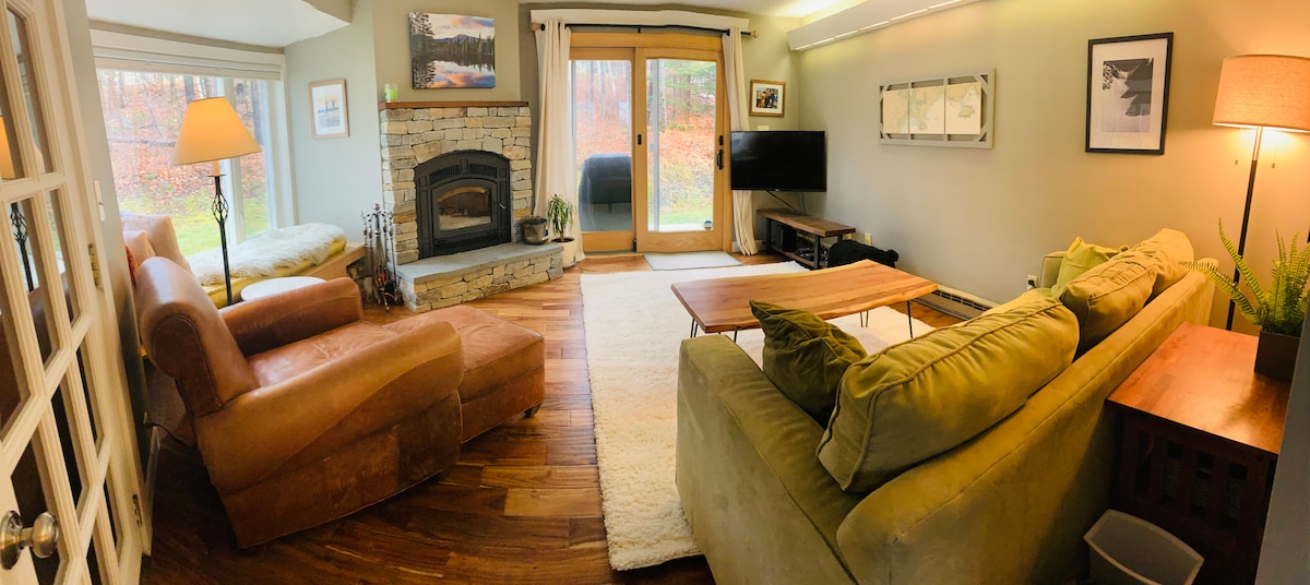 Your endless winter wonderland adventure awaits you here at Sugarloaf, Maine! This well-appointed vacation rental gives you immediate access to all of the winter sports you could ask for. You’ll find skiing and snowboarding at their best, as well as mountain biking. As you ride the chairlift up, take in breathtaking views of the Bigelows and Burnt Mountain. Come back at the end of the day to this rustic 3-bedroom, 2.5-bathroom condo, cozy up, and enjoy the warmth of the blazing fireplace.