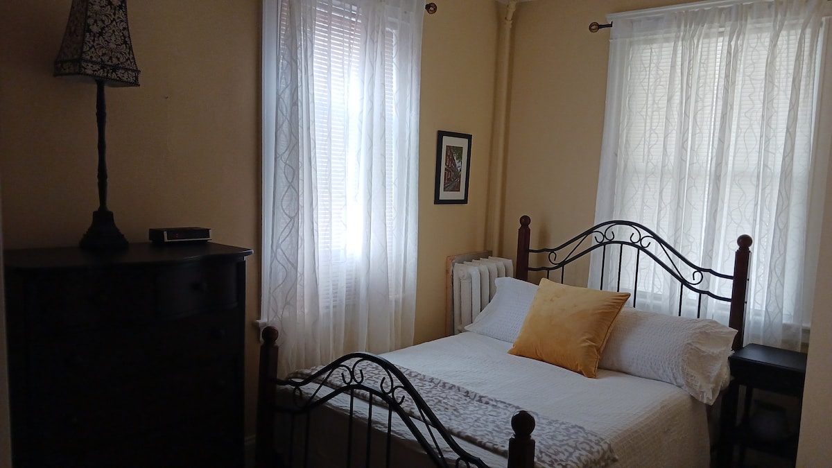 Large private suite in our 1930’s Tudor home with high ceilings, stained glass window, comfy furniture & art. Pet-friendly (1 dog/cat). Suburban NJ town outside NYC. 20 miles from NYC with access to the train (5 min drive) and bus (2 min walk). 25 min drive to Newark airport (EWR). 🎖️🏥👩🏫 We offer a 5% discount for teachers, veterans, active military & nurses. Please message before booking.