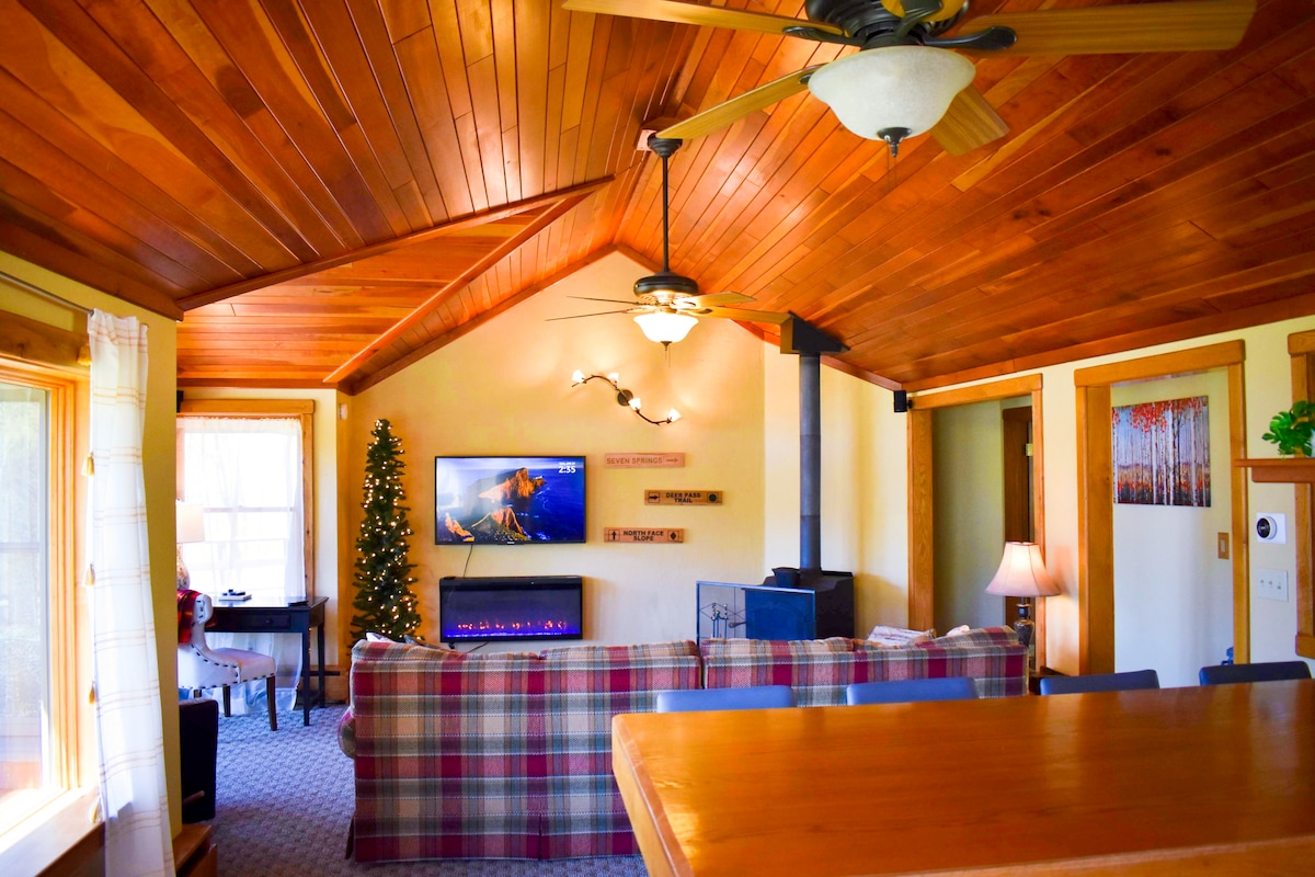 Cozy mountain lodge in the heart of the Laurel Highlands—close to Seven Springs, Hidden Valley, Ohiopyle, Fallingwater, and local wineries! Enjoy skiing, hiking, and endless outdoor adventures, then relax by the wood-burning stove as the mountain sunsets glow outside. The open-concept living space and fully equipped kitchen make it easy to gather, cook, and unwind. Whether you’re here for a weekend getaway or a longer escape, you’ll find comfort, charm, and plenty to explore in every direction.