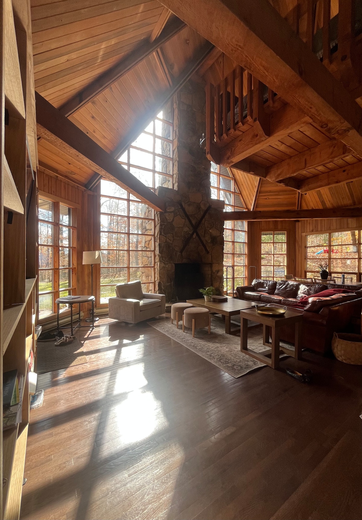 Beautifully renovated and newly designed Chalet conveniently located at the North entrance to Seven Springs. Privately tucked away with an easy 3-minute drive to the top of the slopes for a quick drop-off for a day of skiing. Rustic charm with a fresh updated feel. Plenty of space spread over two floors, an outside screen porch, and an enormous deck finished with a state-of-the-art Jacuzzi. ....Or curl up to a fire and a book with your coffee and enjoy the view as well