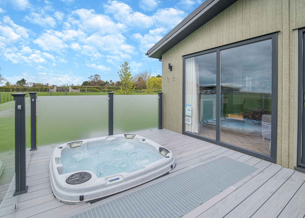 A lovely, light and spacious chalet on the Somerset Levels; finished to a high standard with its own private wood-fired hot tub on the veranda overlooking fields. Gas heating and a wood burner. (see house rules for wood burner usage) TOWELS ARE NOT PROVIDED Check in and out times sometimes can be altered to your needs . Ask when booking . The location is a mile away from a pub and 1.5 from a local supermarket. It’s down a track and very secluded . Don’t expect suburbia. No TOWELS provided .