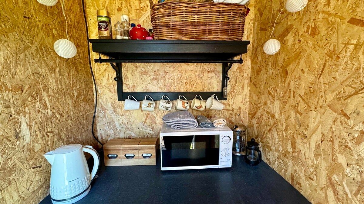 Poppy tent has a proper double bed Mini fridge Electric lights and fairy lights inside it. Single futon Electric charging points Rugs Tea lights Tea coffee sugar Double burner gas stove little pots and pans and stove top kettle. Lovely roll top bath shower attached sink and a composting loo (cleaned when needed) Outside pizza oven Picnic bench Bbq Fire pit Wood charcoal matches provided 🌼🌼Hot tub charged at £30 per stay🌼🌼 paid via air bnb extra services