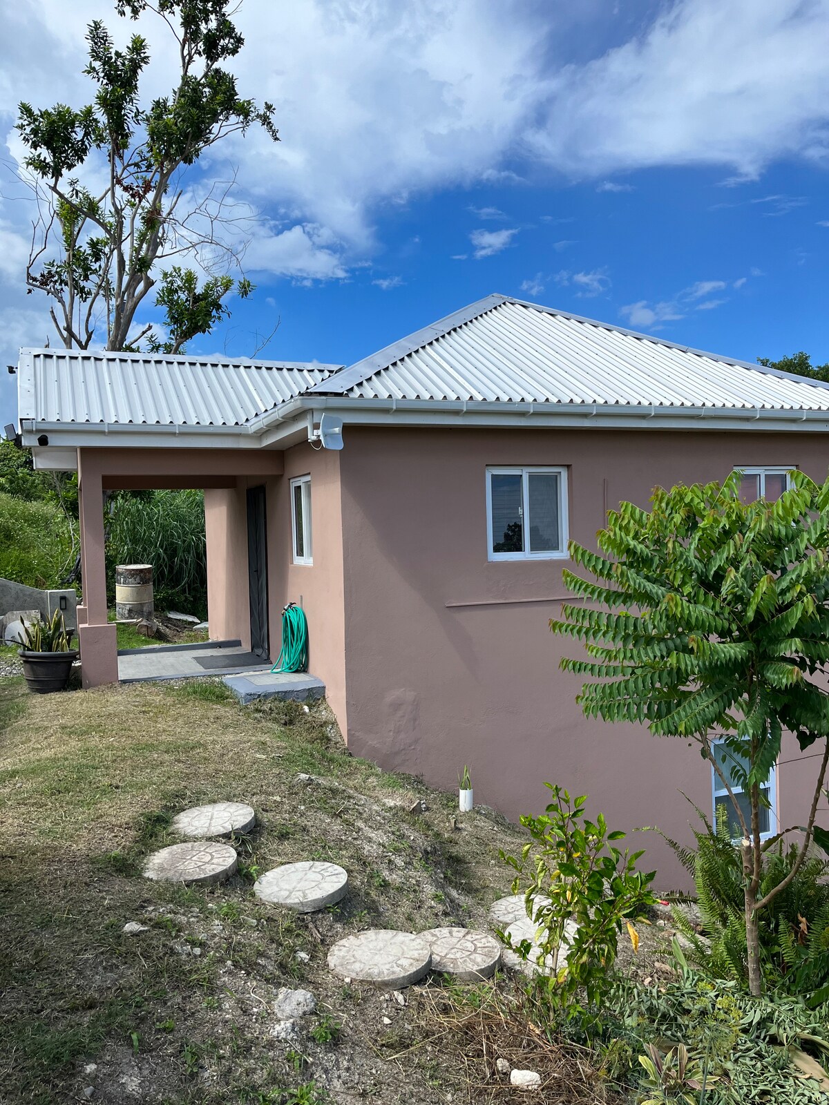 A serene retreat nestled in the hills of Passley Garden. The road to our property is steep and rocky, requiring a 4-wheel drive vehicle. Our villa is part of a holistic, eco-friendly operation, surrounded by lush tropical plants and offering a partial view of Port Antonio. A private wooden deck, complete with a cabana and plunge pool exclusively for our guests. Please note that the villa does not include a full kitchen with appliances. Kindly read our full description and reviews.