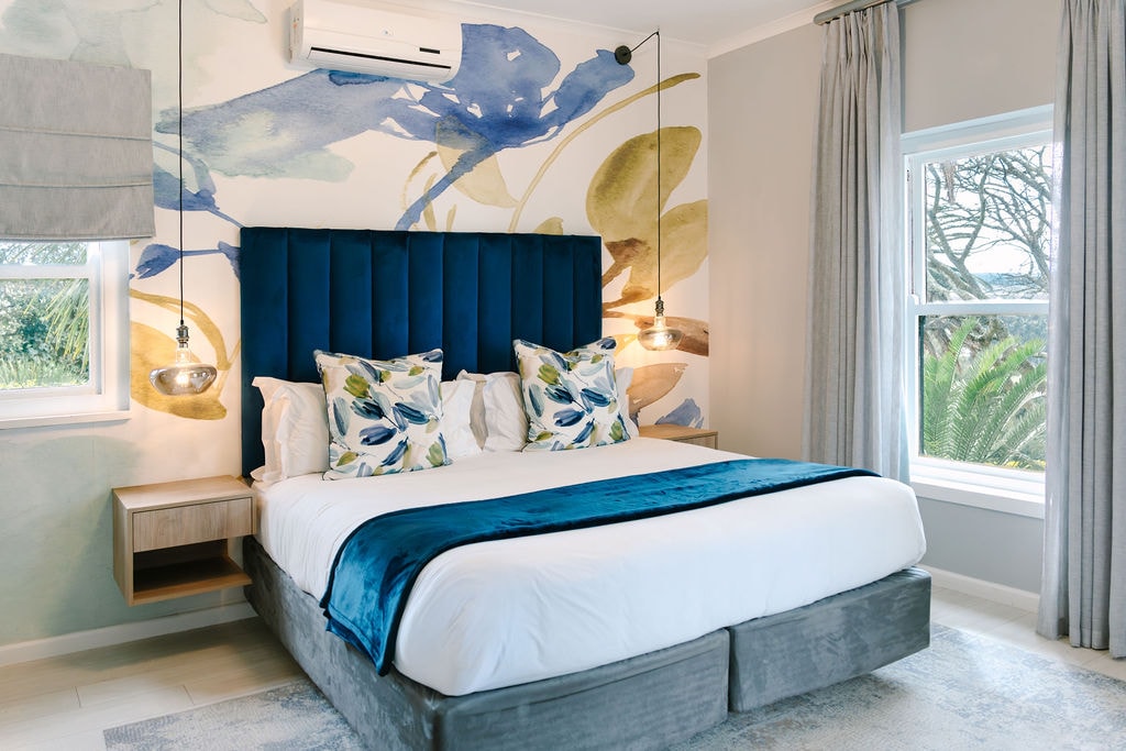 Luxurious and uniquely styled, this 30 sqm King Room features a bold feature wall and an en-suite bathroom with bath and shower. Includes a Nespresso machine, DSTV, fast Wi-Fi, and daily gourmet breakfast. Guests enjoy a pool with mountain views, Lorsoni’s Restaurant (daily; dinner Thu–Sat), and a bar with local wines and craft drinks. We have two rooms in this category – Rooms 4 and 6. One will be assigned at check-in. Both offer the same comfort and layout.