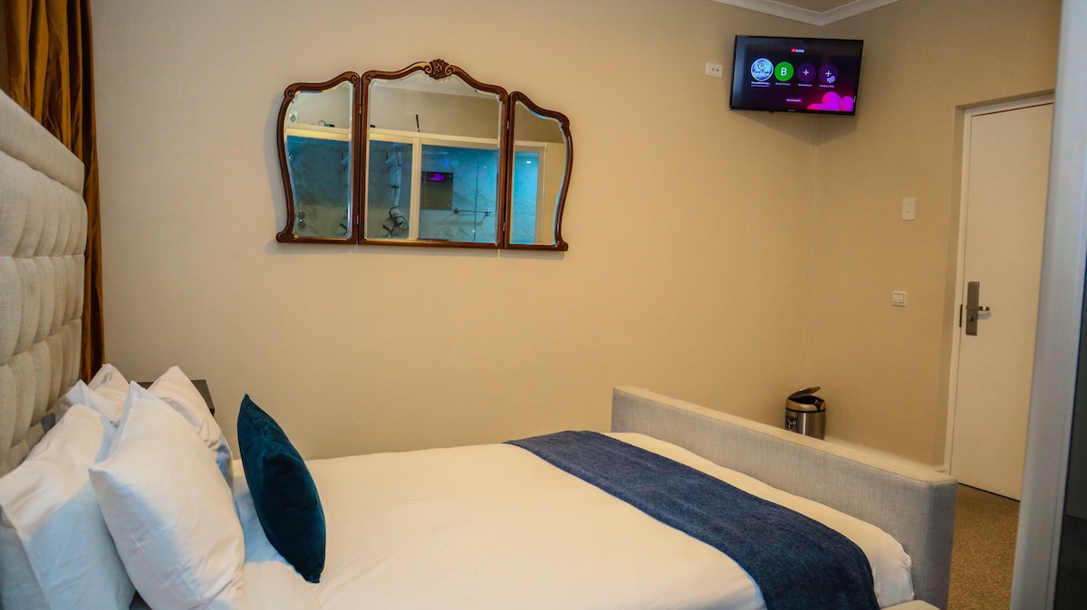 Spacious and versatile, this 45 sqm Family Suite includes a plush king bed, optional child accommodation, and a private terrace ideal for relaxing. Features an en-suite bathroom with shower, Nespresso machine, DSTV, fast Wi-Fi, and daily gourmet breakfast. As part of The Salene Hotel, enjoy a panoramic pool, Lorsoni’s Restaurant (breakfast/lunch daily, dinner Thu–Sat), and a licensed bar with local wines, craft beers, and top-shelf spirits.