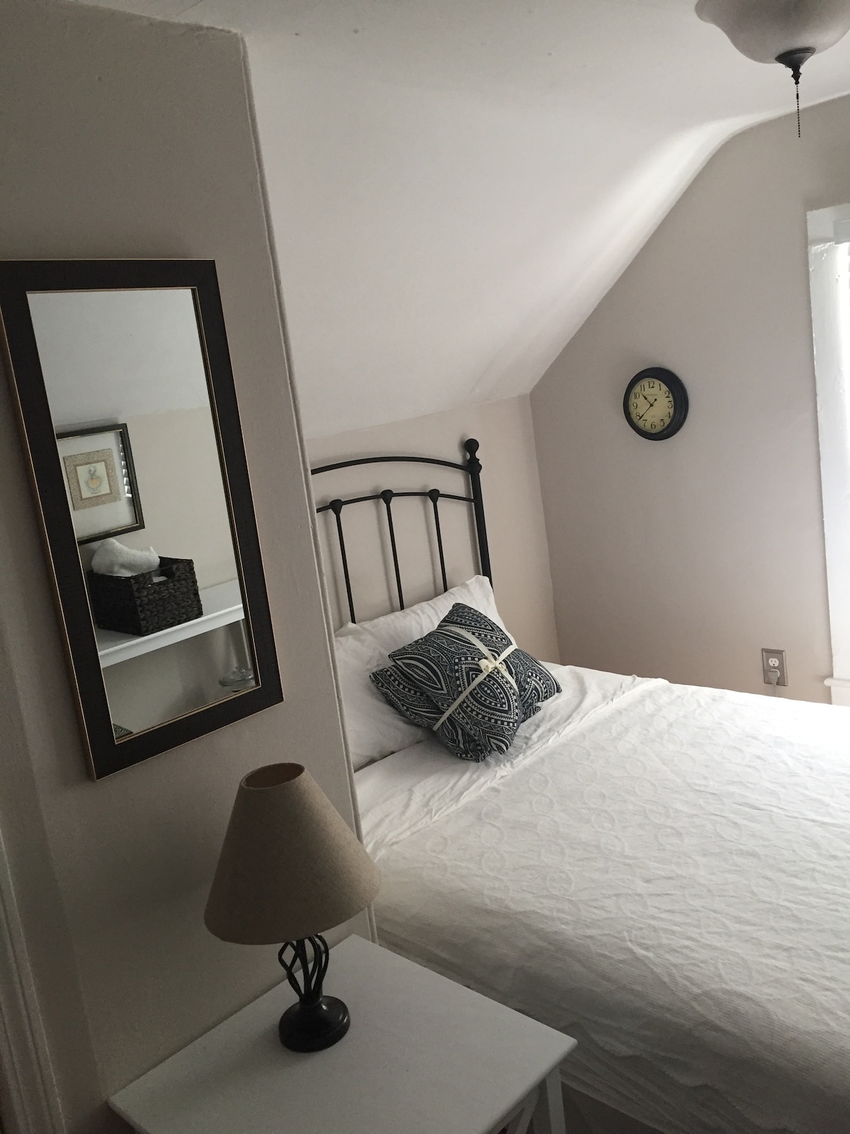 Newly renovated, open concept apartment in a private home located on a quiet residential street. Single, queen-sized adjustable bed, steam shower, and oversized bubble jet tub make this an ideal retreat for stress free relaxation. Includes off-street parking, full-size washer and dryer, and the use of both front and rear porches with seating in season. This apartment is great for couples or individuals looking to relax and get a break from their busy lives.