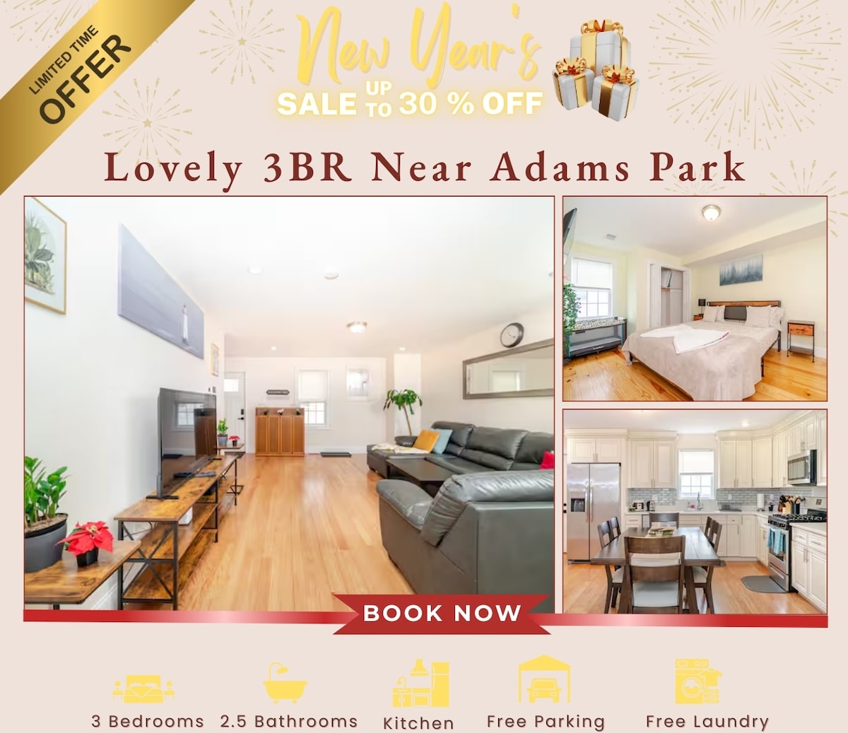 亚当斯公园附近的舒适3卧儿童友好型房源•停车位