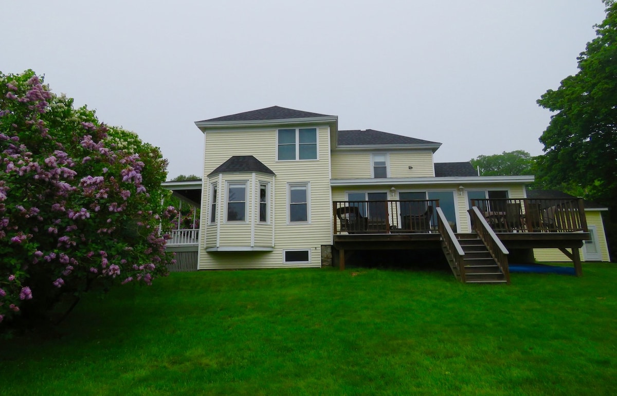 5 acres of lawns, gardens, and meadows and a gentle rocky beach on Blue Hill's Salt Pond, a protected inlet of the Atlantic Ocean. The house faces south towards the water and overlooks a gorgeous blueberry field that turns a majestic shade of deep red in the fall. Please feel free to reach out with us for more information or to inquire about a longer term booking. The house has two bedrooms and baths on the main level and an two additional bedrooms, bathroom, and living space downstairs.