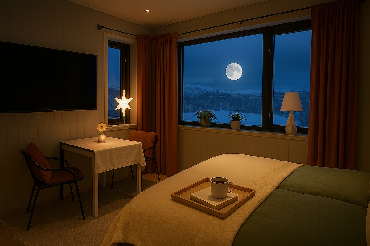 Looking for a magical, romantic escape? This modern and cozy studio offers an unforgettable view of the Aurora, away from city lights. Just step outside to your private floating quay for a pristine, unobstructed Aurora experience. Everything you need for a perfect night outdoors is included. Rent a private sauna with access to the quay for a refreshing dip in the polar waters—perfect for photo moments! Just 12 minutes from the airport, your space is private and faces a quiet parking area.