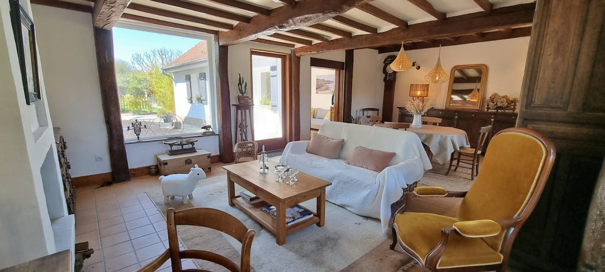 Charming single storey house with wood burning fireplace south facing west private and enclosed garden and terrace. This cute place, nestled in an outbuilding of the owners' house, is located on the edge of a quiet lane with a large park with trees, nature and meadows as neighbours. This place, not far from the Baie de Somme, the sea and the forest, will be ideal for a weekend, a holiday, or a telecommuting break for couples or families.