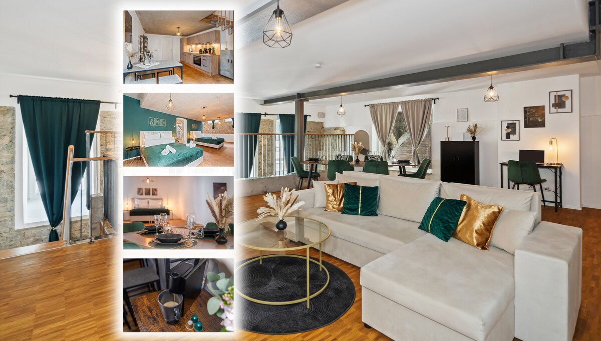 Welcome to DND Apartments! Looking for unique accommodation? Experience our 170 m² design loft with a fantastic view over Würzburg. High-quality furnishings: → Best location (close to the residence, shopping facilities, connection to the city centre) → 3x bedrooms with KINGSIZE beds → SMART TVs with Netflix and Xbox → Fully equipped kitchen → Workplace & high-speed WLAN → Washing machine & tumble dryer → Sunny loggia → 2x car parking space → Baby cot