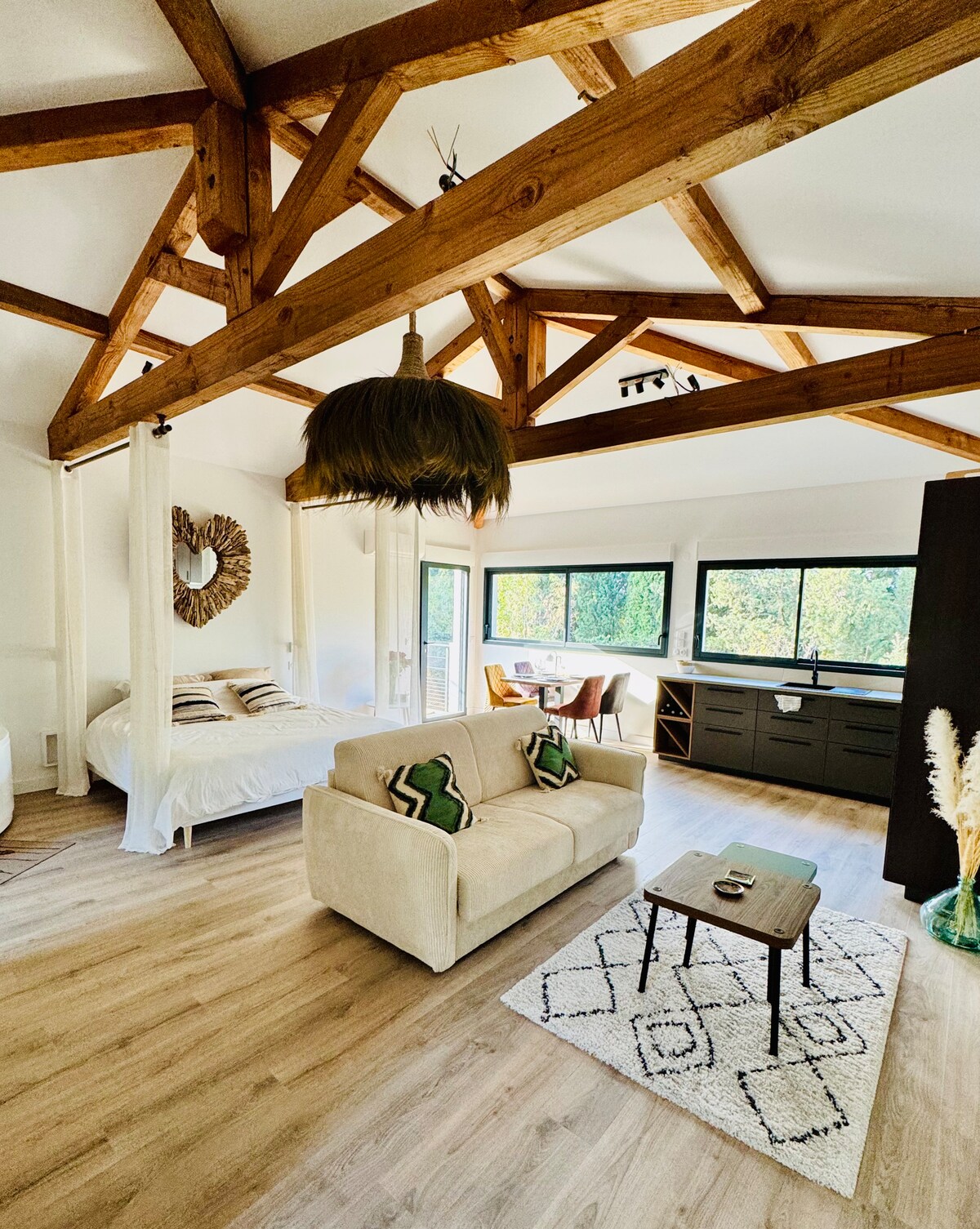 Bienvenue au "Loup dans le Jacuzzi" situé dans la région du Pic St Loup. Notre studio de 30 m² propose un lit suspendu et une terrasse avec jacuzzi privatif accessible toute l'année, sans vis à vis dont vous pourrez profiter en toute intimité Cette chambre douillette et chaleureuse sera idéale pour passer une nuit romantique ou pour une pause détente dans une déco très personnelle et originale. Le jacuzzi pourra être couvert en cas de pluie. 10% à partir de la 2ème nuit 25% pour 1 semaine