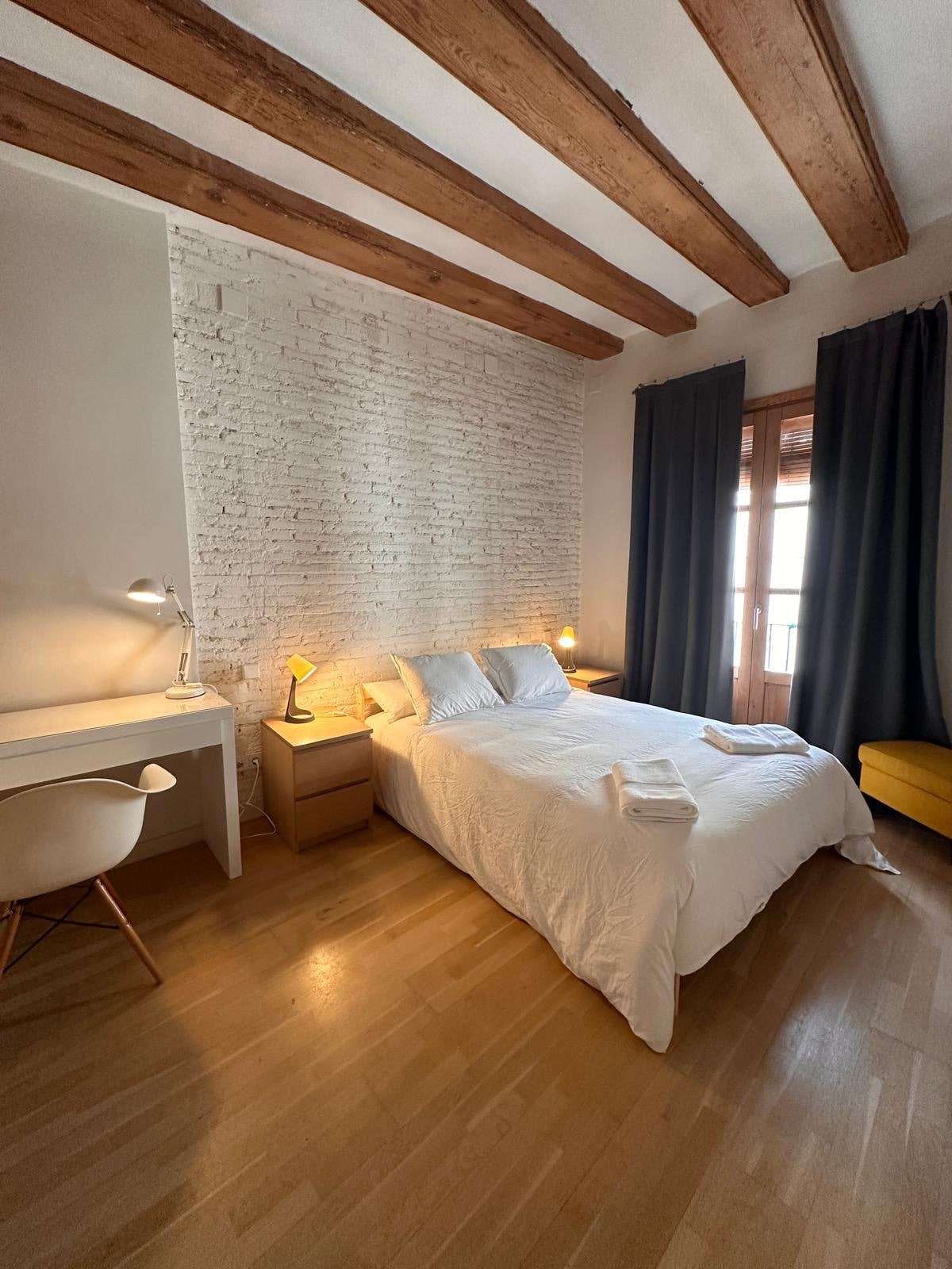 Let yourself be seduced by a modernist apartment in the center of the city. It has spacious and bright spaces, mosaic modernist floors and quiet rooms that will make you feel like home. We have 5 rooms, 3 double beds and 4 single beds in total. 2 bathrooms full equipped and 2 toilets. There are two kitchens fully equipped. The apartment has AC and also fans in the ceiling. There are a few steps (approx 40) before you reach to the elevator. Local permit: HUTB-009392