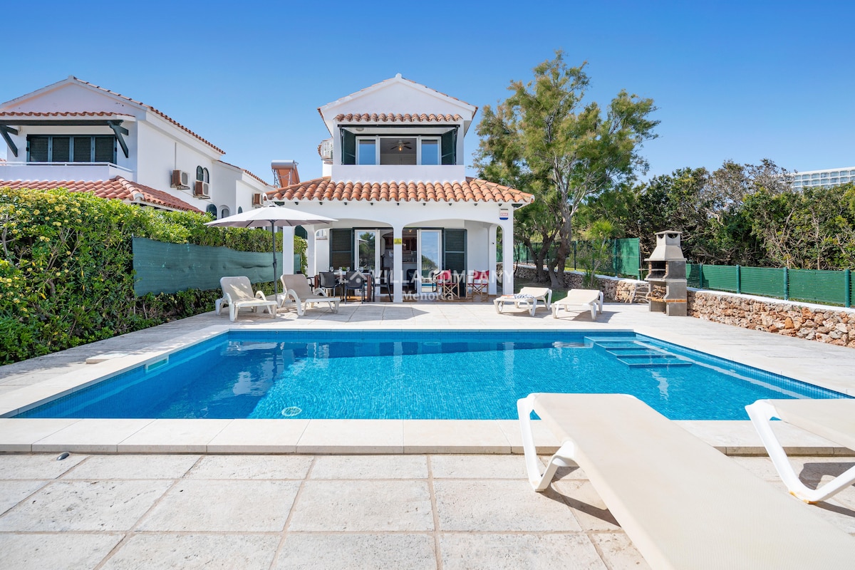 Olvídate de las preocupaciones en este gran alojamiento: ¡es un oasis de tranquilidad! VILLA VEGA, es una villa situada en la costa norte de Menorca, la cual dispone dispone de 3 habitaciones, 3 baños, salón, cocina, lavadero, porche, terraza y una gran piscina en un amplio jardín. Se trata de una villa totalmente independiente y situada en una zona muy tranquila a la vez que está muy próxima a la magnífica playa de aguas cristalinas de Arenal de En Castelll (3 minutos caminando).