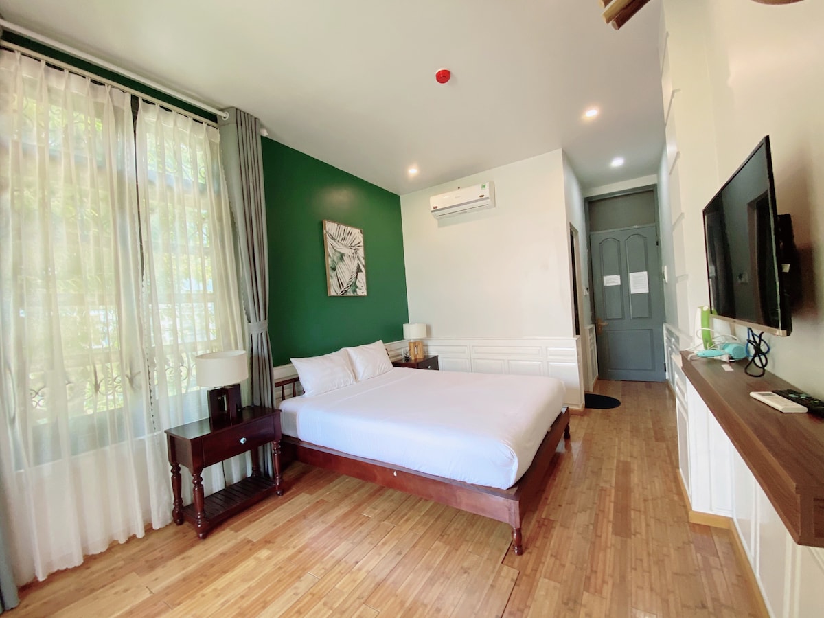 ★THI BOUTIQUE VILLA IS A QUIET AND COSY VILLA - IT LOCATED NEARBY THE MAIN BEACH OF DANANG CITY. This vintage room is on the 2nd floor with a large balcony with table and chair for relax time. when standing here you can catch the stunning view and table You can bring drink or food to terrace on 3rd floor with many table & chairs to enjoy the night with light decor over the head. This atmosphere will bring comfortable feeling for you.