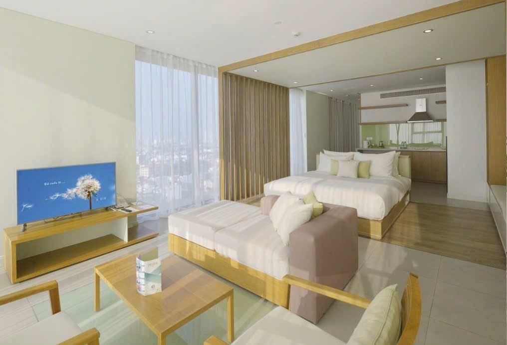 Welcome to the Beachfront Lovers Bliss Retreat, a luxurious 5-star apartment perfect for couples. Located on My Khe Beach, this retreat offers stunning ocean views and a romantic atmosphere, enjoy a stylish apartment featuring a plush king-sized bed and a fully equipped kitchen for preparing meals together. Indulge in our on-site restaurant for delightful local and international cuisine.