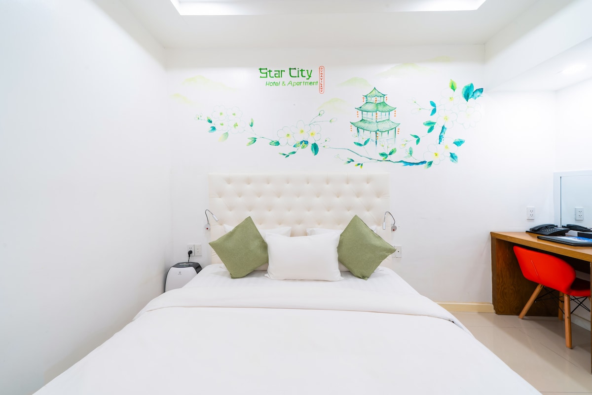 There is NO BREAKFAST in the room rate. We have breakfast service (A la carte) paid at hotel for you to choose if you want. Besides, there are restaurants or local food shops nearby or you can also order food online via Shopee food/Grabfood Rooms are 4-star equivalent with: - A king-size double bed (1m8 x 2.1m) with HIGH QUALITY LINEN. - FREE room cleaning everyday NOTICE: Because the hotel is nearly some local restaurants so it can be noisy sometimes if the restaurant has a party.