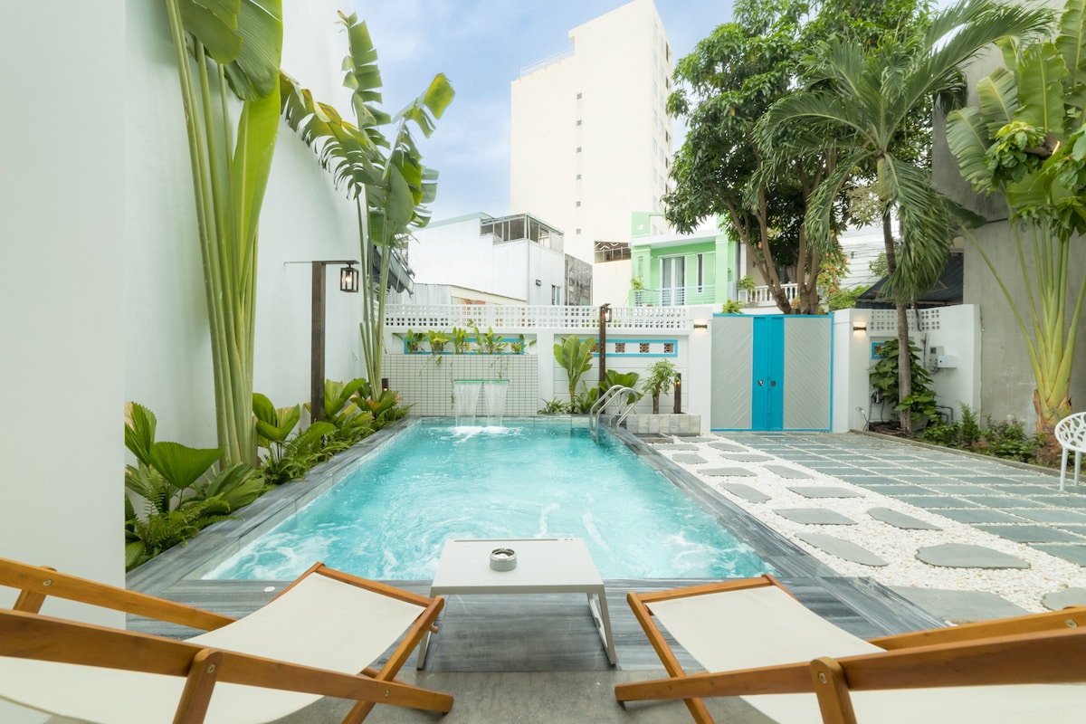 Welcome to Mika Villa! Your dreamy hideaway in Da Nang — a private 3 Bedroom, Santorini-inspired retreat with the iconic mountain views and a peaceful vibe. With clean, modern design and a sparkling private pool, it’s the perfect escape for families, friends, or couples seeking a calming surrounding. Just only a 10–12 min walk to the beach, yet far from the city crowds, Mika Villa offers the calm you crave and the comfort you deserve. Unplug, unwind, and soak up the sun at Mika Villa.