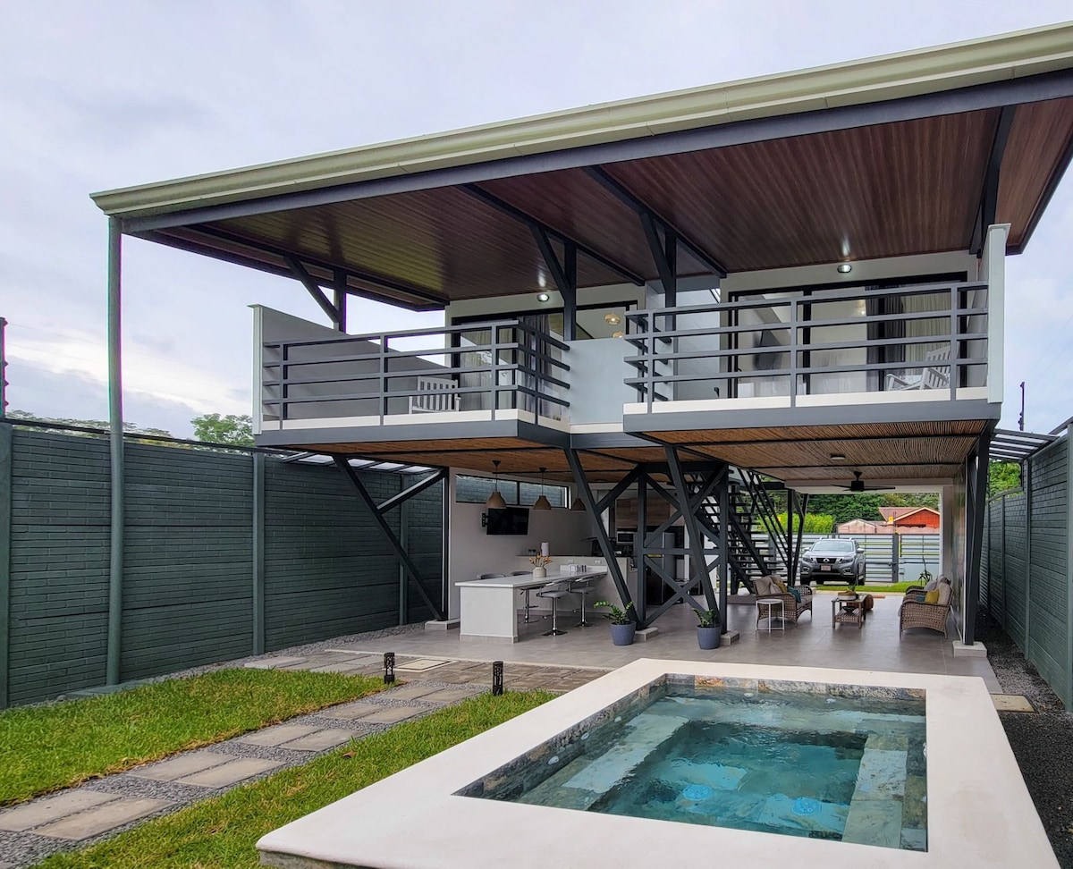 Hermosa propiedad de 722 pies de construcción rodeada de exuberante vegetación con mucha privacidad y con una hermosa piscina infinita totalmente privada. Ideal para familias o grupos de amigos. En el interior de la casa, la historia continúa con diseños modernos, muebles con acabados de primera calidad. Esta casa tiene capacidad para 10 personas, cuenta con 4 dormitorios y 4 baños. Estamos convenientemente ubicados a tan solo 15 minutos del centro de La Fortuna.