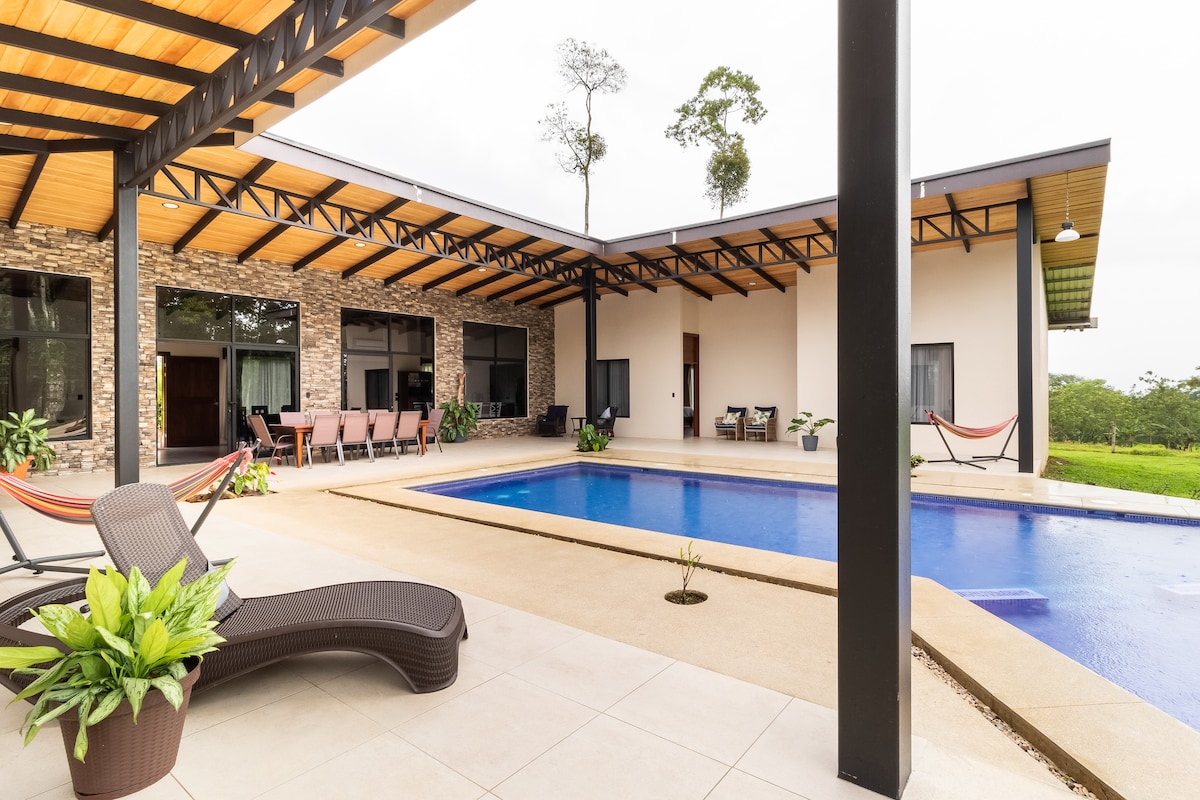 Enjoy a unique experience at this villa surrounded by nature. Perfect for disconnecting, it offers privacy, security, and a relaxing atmosphere. The private hot tub allows you to unwind while taking in the beautiful views. Explore the private forest and enjoy peaceful hiking in a tranquil environment, breathing in fresh air. This retreat reconnects you with the essentials, providing the ideal place to enjoy calm and natural beauty! We are 15 minutes by car from La Fortuna.