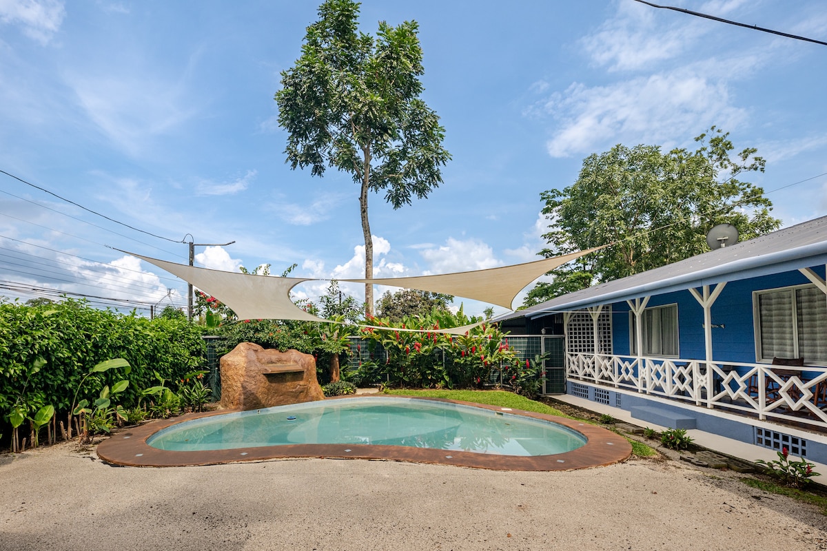 At Casa Pura Vida, you'll enjoy an entire house with a private pool: there are no shared areas. Located a 12-minute drive from downtown La Fortuna. The property is entirely yours. Surrounded by lush forest, it is in a secluded, safe, and quiet neighborhood. There’s a good chance of spotting wildlife (birds, garrobos, etc.). The house features a fully equipped outdoor kitchen and barbecue area, a cozy bedroom with A/C, bathroom with hot water, WiFi, streaming TV, games, and a large outdoor area.