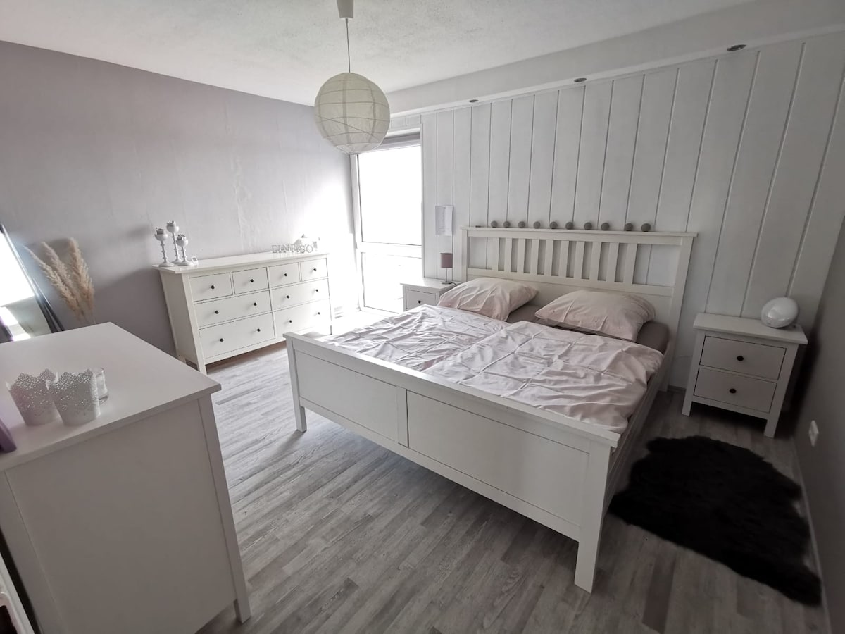 Fühle Dich wie Zuhause in unserer gemütlichen Wohnung in Strand- und Waldnähe und unweit des Zentrums von Flensburg und der Grenze zu Dänemark. Die Wohnung befindet sich im Souterrain eines Einfamilienhauses in ruhiger Lage mit Blick in einen parkähnlichen Garten Zur Wohnung gehört eine gut ausgestattete Pantryküche, Wohn- und Essbereich, Schlafzimmer mit Doppelbett und ein Bad mit Badewanne und separatem WC. Überdachte Aussen- und Holzterrasse Schnelles WLAN und 4K Smart TV