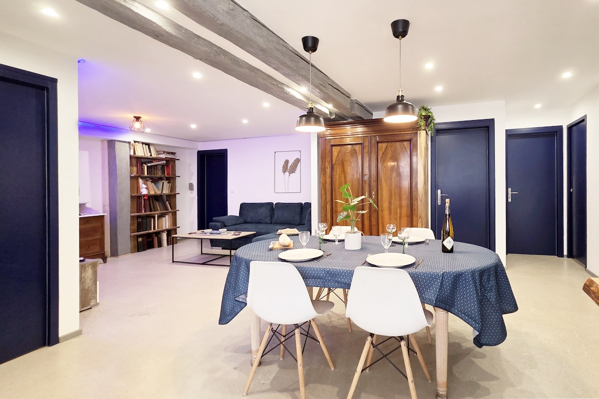 Venez découvrir cet élégant et lumineux logement de 110 m2 au dernier étage d'un immeuble contemporain. La décoration allie avec fantaisie le moderne, l'ancien et la tradition alsacienne ! Deux chambres, l'une équipée d'un lit queen size (160x200)et l'autre plus spacieuse équipé d'un lit king size (180x200) sont complétées par un beau dressing. La salle de bain est confortable avec deux vasques et une douche à l'italienne. Une terrasse prolonge le salon et les deux chambres.