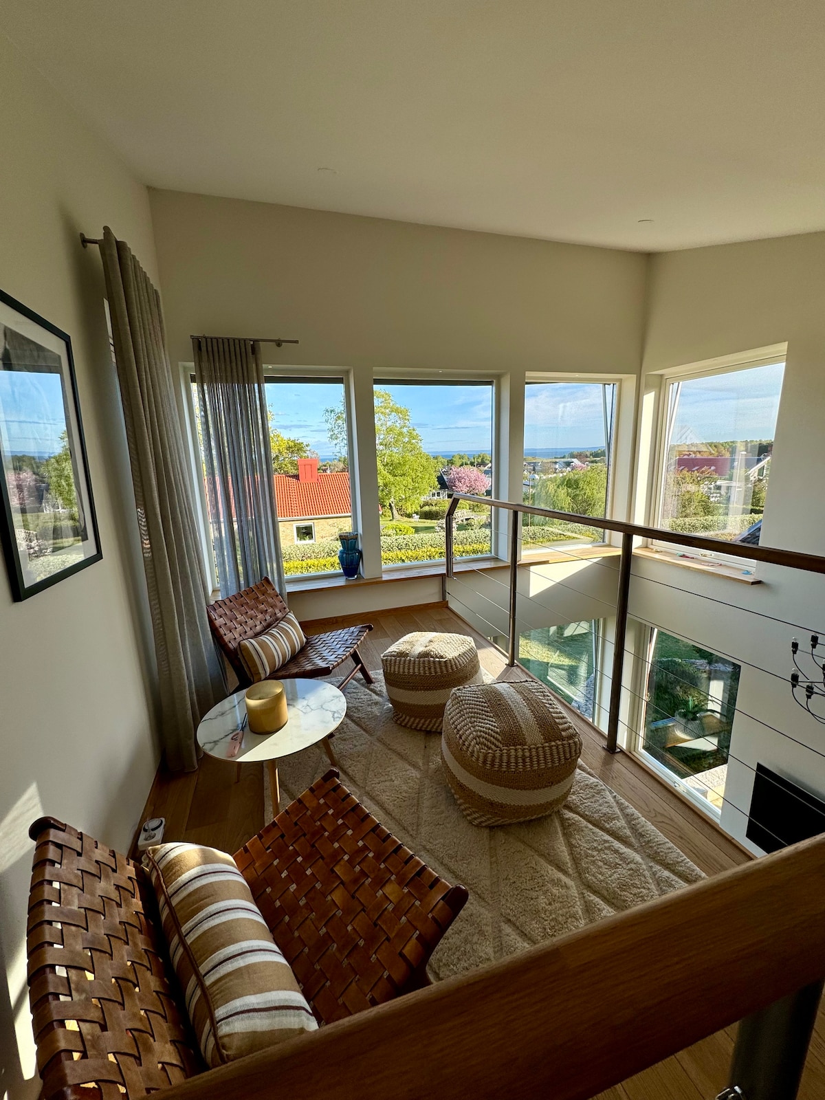 "Trädgårdsvilla" med stor altan med havsutsikt i söderläge. Byggd 2019. Belägen i villaområde nära hav och natur, 6 km från Halmstad centrum. 500m till badplats och småbåtshamn. Busshållplats ca 100m. Mataffär 400m. Vandringsled 15km utmed havet. Ca 3 km till Tylösand, Sveriges berömda sandstrand. Inga rökare eller husdjur "Garden villa" with sea view from the large patio facing south. Built 2019. Residential area, 500m to the sea, bus stop 100m, supermarket 400m. No smoking, no pets.