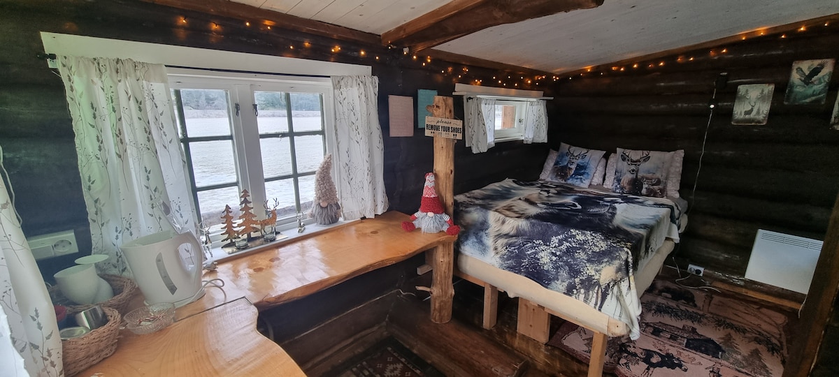 Utbygd/renovert hytte på et nydelig sted i Sør-Norge. Må ro over et lite vann for å komme til hytta, eller gå gjennom skogen (700 meter). Her kan man bade, fiske ørret i vannet eller være heldig å se fiskeørn sveve over vannet. Er ørnerede i området. Rett og slett et magisk sted i vannkanten. Soveplassene har vinduer slik at du kan se ut i naturen når du ligger i sengen. Garanti for avslapning! Vi vurderer å leie ut til ordensmennesker noen helger i året og noen uker om sommeren.