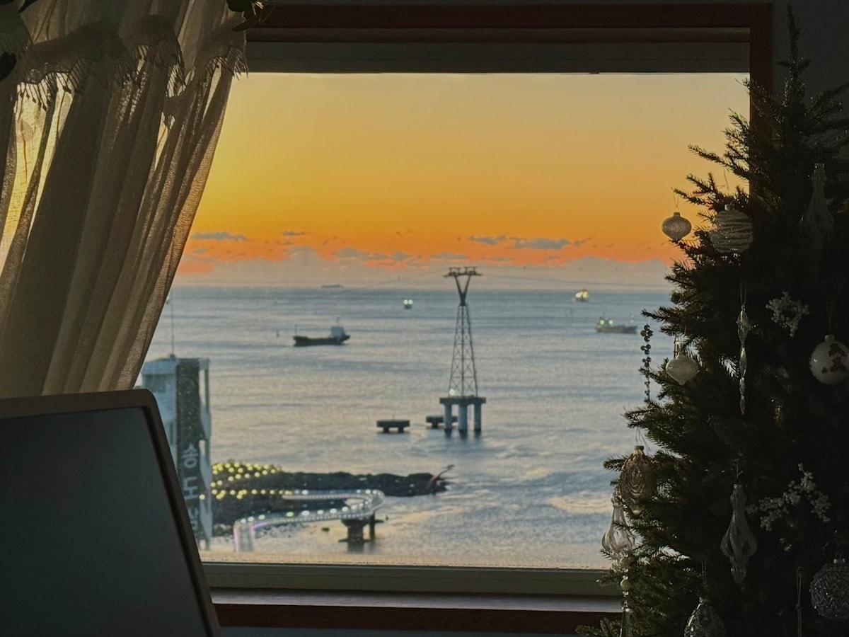 A peaceful seaside escape overlooking Songdo Beach and the stunning ocean cable car. Just an 8-minute walk takes you straight to the sea. Please note: You’ll need to climb about 50 steps from the main road — but the sweeping views of the ocean and the beach make it all worth it. **Free pickup available for stays of 2 nights or more. & Luggage pickup is also possible! ** Long-term stay discounts available — contact host for details