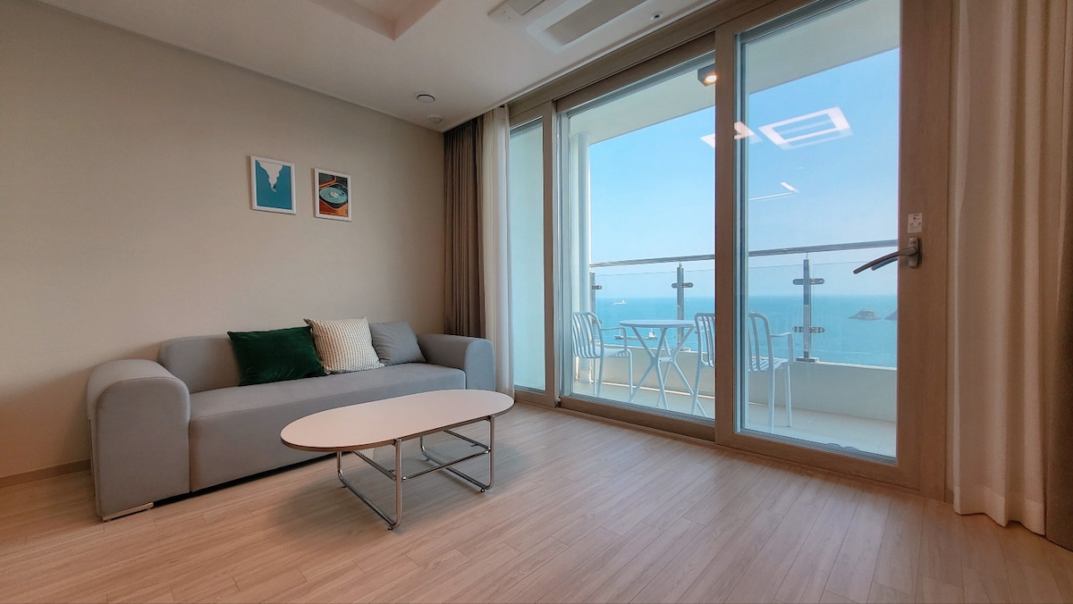 더블면 오션뷰. 침대에서도 오션뷰. 해운대 해수욕장에서 도보 5분거리에 있는 취사. 세탁기.건조기.스타일러까지 되는 고급스럽고 화이트한 숙소에 머물러 보세요. HaeundaeOceanView #BusanStay #SeasideRetreat #CozyRoomWithAView #MinimalInterior #HealingStay