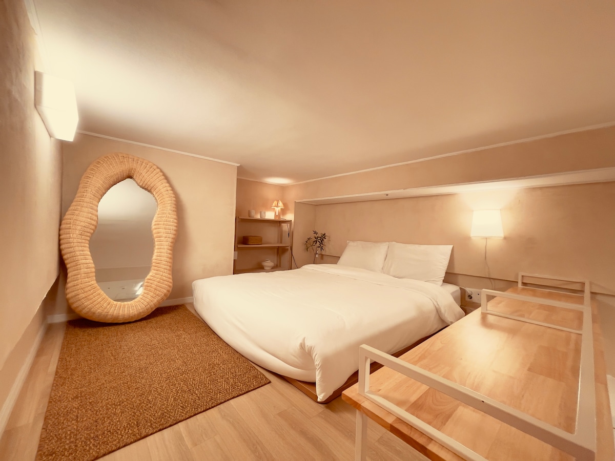벽의 결에 빛이 머무르고, 창밖의 바다는 말을 걸지 않습니다. 유럽의 미장을 닮은 이 공간은 화려함보다 차분함을 먼저 건넵니다. 발걸음이 자연스레 느려지고, 숨이 깊어지는 이유를 굳이 묻지 않아도 됩니다. 바다를 향해 열린 오션뷰, 휴양지처럼 여유로운 리듬 속에서 아무 일정도 넣지 않은 하루가 가장 잘 어울립니다. 커튼을 걷는 시간, 커피를 마시는 속도까지 모두 당신에게 맡겨진 곳입니다. 영종도 구읍뱃터 인근에 위치해 산책과 식사가 가볍고, 인천공항과 인스파이어까지는 차로 약 20분. 여행의 앞과 뒤, 그 사이에 조용히 머물기 좋은 거리입니다. 여기는, 잘 쉬기 위해 만들어진 공간입니다. 아무것도 하지 않는 하루를 가장 아름답게 보내고 싶을 때.