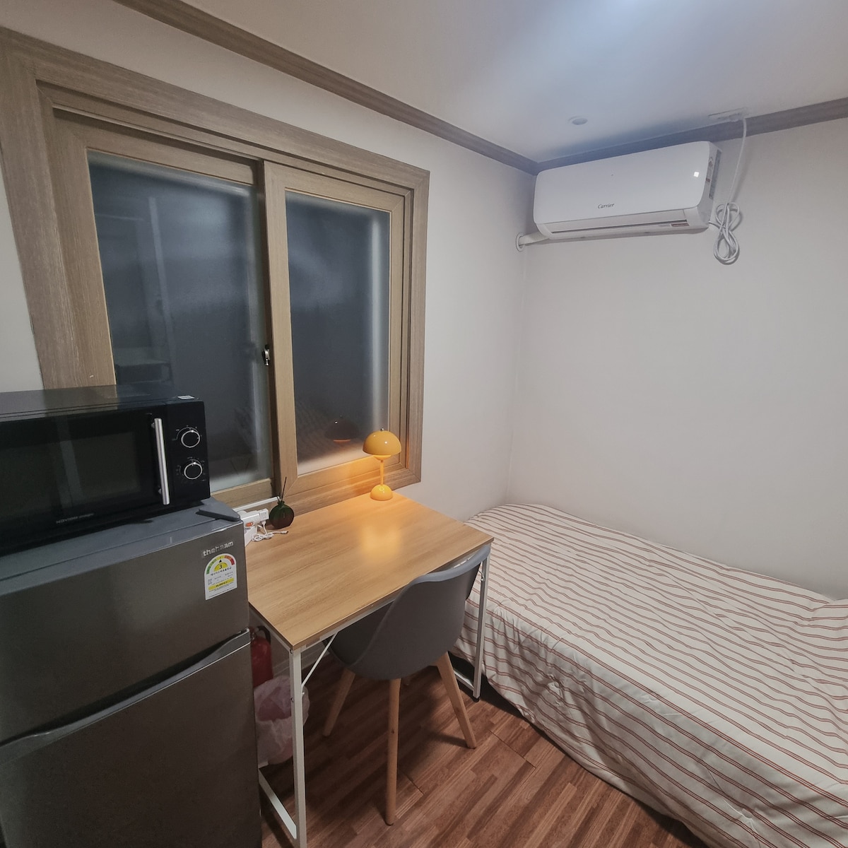 다음의 투숙객들을 위한 숙소입니다. 공항을 이용하시는 손님. 짐을 두고 부산을 여행하실 손님. 사상버스터미널을 이용하시는 손님. 몇일 출장을 나오신 손님. 신라대학교에 업무가 있으신 손님. 가성비있게 잠잘곳을 찾으시는 손님. 장기 투숙을 원하시는 손님. 해당 호실은 개인침실, 개인샤워실, 개인화장실로 구성되어있습니다. 공용휴게실이 있습니다. 깔끔하고 편안한 숙소를 제공해드립니다. 침대는 더블사이즈입니다. 개인공간은 침실, 화장실입니다. 휴게실은 공용공간입니다. 체크인은 15시, 체크아웃은 11시입니다. 건물 내부는 금연입니다. 감사합니다.