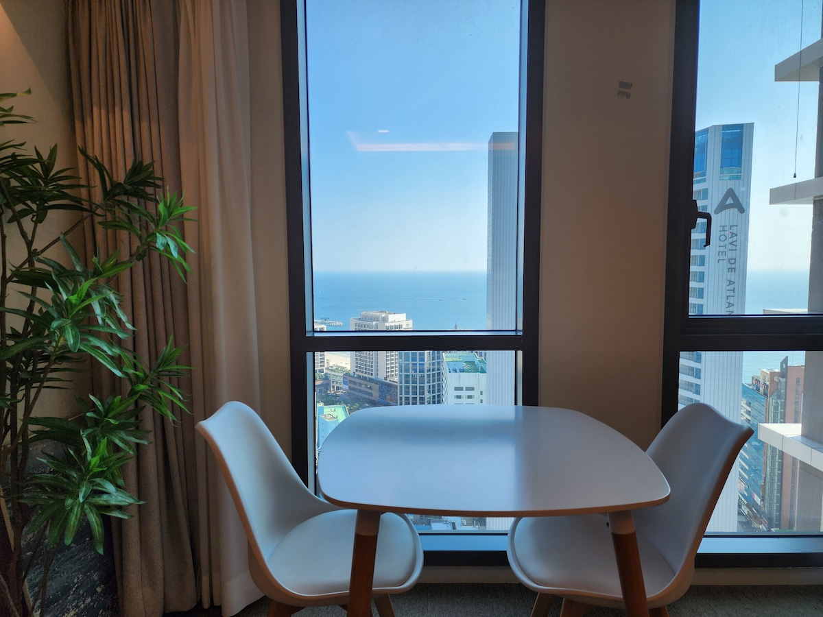 더블면 오션뷰. 침대에서도 오션뷰. 해운대 해수욕장에서 도보 5분거리에 있는 취사. 세탁기.건조기.스타일러까지 되는 고급스럽고 화이트한 숙소에 머물러 보세요. HaeundaeOceanView #BusanStay #SeasideRetreat #CozyRoomWithAView #MinimalInterior #HealingStay