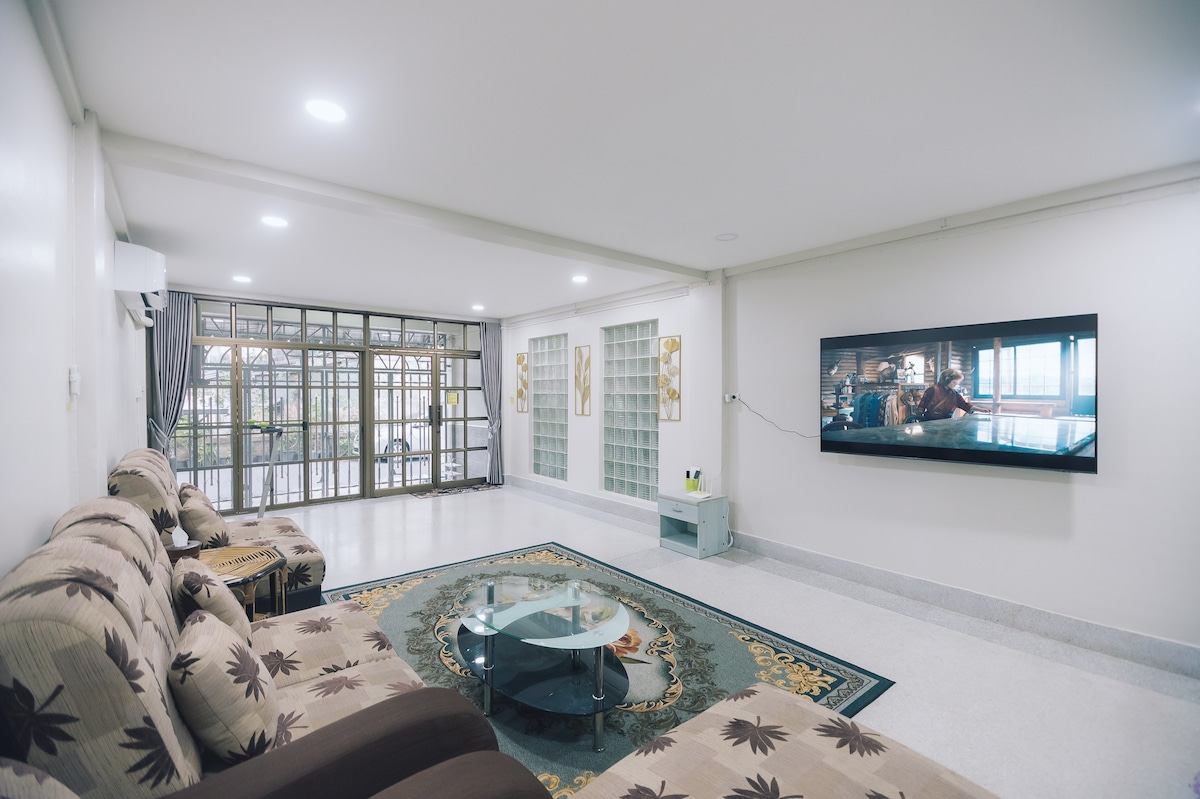 🌍Great Location: 6 min to Lee Garden, 5 min to Floating Market 🏠 Entire house,up to 22 guests 🛏️ 8 King-Size Beds in 4 Bedrooms with balconies 🛋️ Large living room with 65" Smart TV, big sofa bed (On ground floor, convenient for elderly guests) 🚿 4 Bathrooms with hot water 🍽️ Full Kitchen & Dining Area 💧 Unlimited Purified Water– Hot & Cold 🏞️ Rooftop, washing machine 👶 Kid Playground with toys and Boardgames 🍴 2 Min Walk to 7-Eleven. Street Food, Café nearby. 🚗 4 Cars Parking