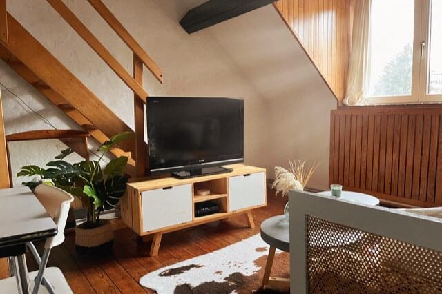 Appartement 1 chambre dans une rue calme dans les combles d’un château où nous habitons. A 5 min à pied des transports qui offrent un accès direct vers le centre ville (35-40min). WC et salle d'eau séparé Comprend un lit double pour 2 personnes et un canapé lit pour accueillir jusqu’à 4 personnes. Si souhait d'ouverture du canapé mettre 3 personnes dans la réservation ⚠️c'est au 3e étage et il n’y a pas d’ascenseur.Parking gratuit à 5 min à pied de la maison.⚠️ pas de visiteurs autorisés la nuit