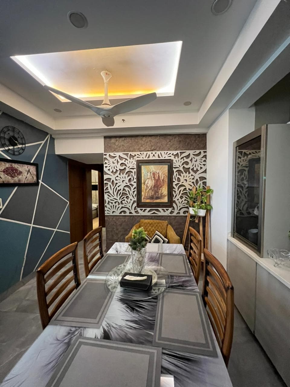 Boho-luxury 1BHK with a warm, cozy vibe featuring a private balcony with cushioned swing and fairy lights. ✨ Enjoy a 55” Smart TV with soundbar and subwoofer for a theatre-like experience. The stay offers AC, air purifier, induction, fridge, RO, cookware and tea/coffee. 🙌🏻 Located near Shalimar Bagh Metro, just 100m from KFC, Domino’s and McDonald’s, and close to PVR and Pacific Mall. 📍 Ideal for dates or birthdays, with décor available on request.❤️