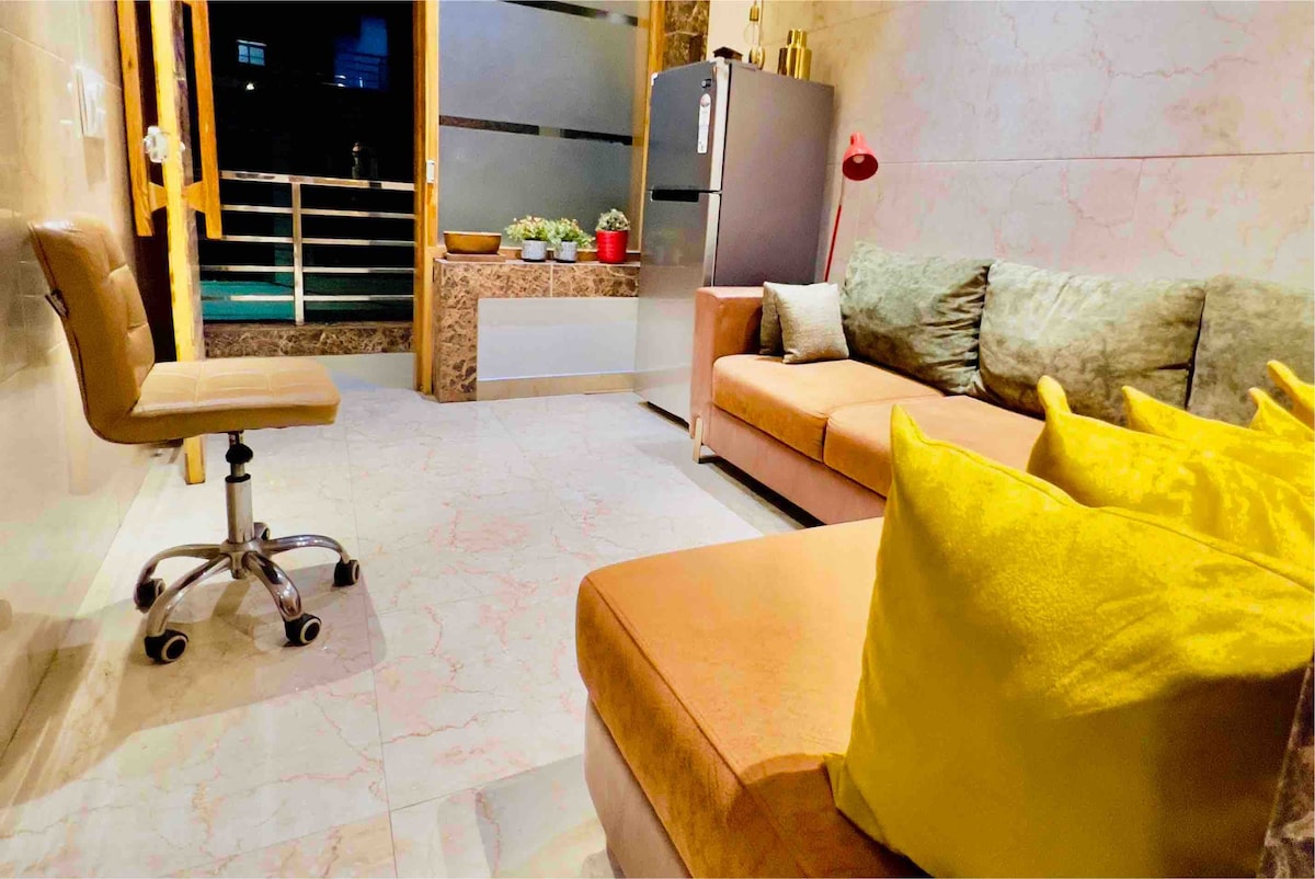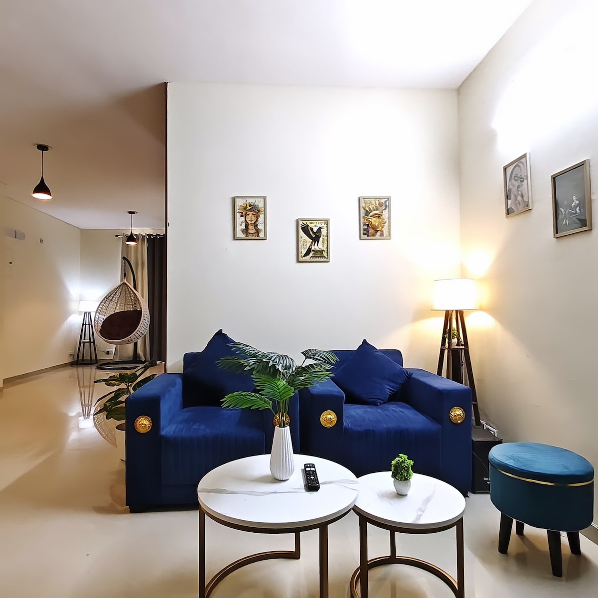 Escape to Predators’ Terrace – a stunning 2BHK retreat featuring an open terrace, modern amenities, and lift access. Step into a world where bold wildlife art meets contemporary elegance. Sip wine under the stars, unwind in the chic lounge, or start your morning with a coffee on the sunlit terrace. Perfect for couples, solo travelers, or stylish getaways — this space blends romance and comfort. Your perfect escape awaits — where nature meets luxury in the heart of the city.