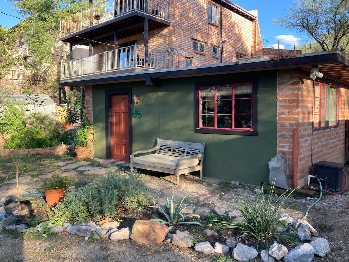 The Studio is a moderate sized living quarters set up purposely for lounging, relaxing, personal entertainment and rest. Set within the compound of a historical property (The Box T Ranch built in 1902), the studio is the perfect home plate for all your Southern Arizona adventures. It includes an amazing king size bed, comfortable furnishings, a 57" Sony TV, mini fridge, microwave, Keurig, 2 person walk in shower and an AC unit. We are within 5 minute walking distance into town. Perfect getaway!