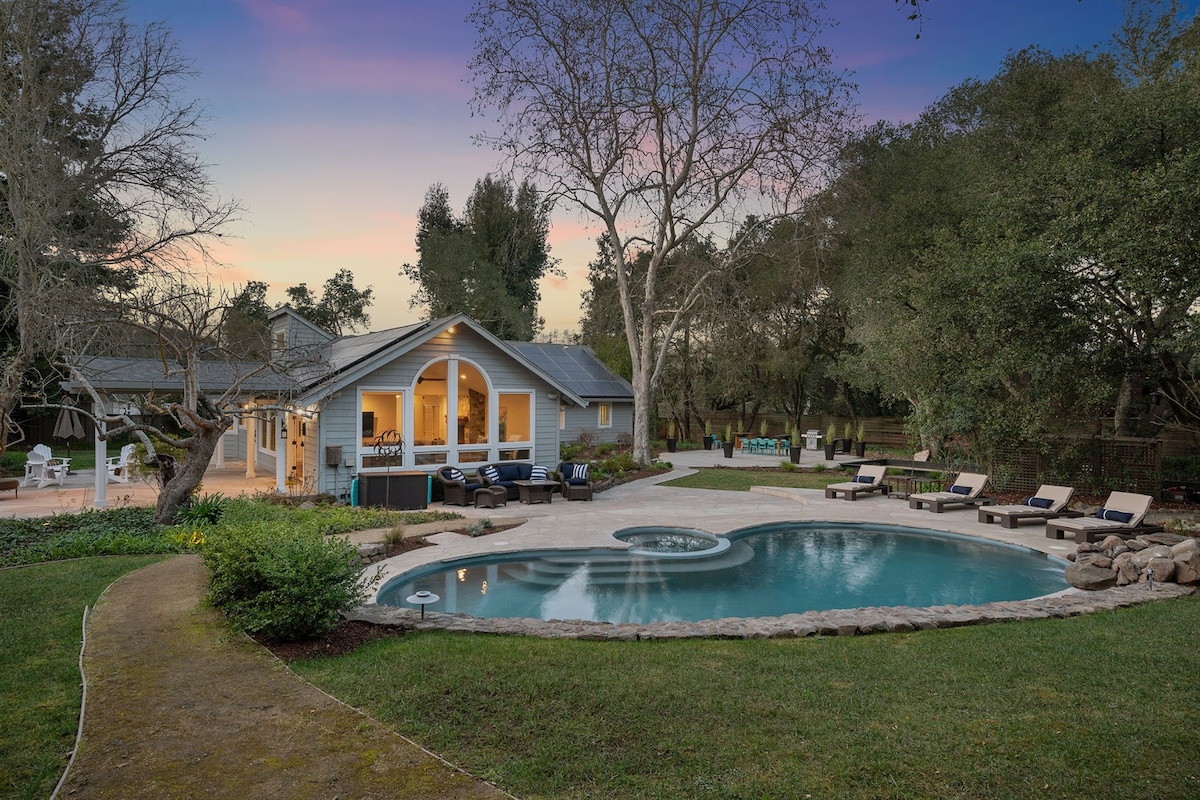 Gather your group and experience a stunning wine-country home just 5 minutes from vibrant downtown Sonoma. This 3 bedroom ensemble includes a main house + guest cottage, multiple outdoor lounges, hot tub, fire pit and pool, gas fireplace — perfect for lively group days and quiet restful nights. Surrounded by vineyards, yet just minutes to wineries, dining and town, this distinctive retreat invites you to book now and indulge in togetherness, adventure, and rejuvenation.