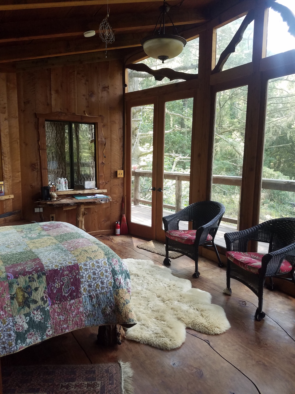 This rustic yet luxurious cabin is the perfect place to unplug. Walk through the woods, relax by a fire, and enjoy the food and wine of the Russian River Valley. 10 minutes from the beach. Minutes from Occidental, Graton, Forestville, and Guerneville. House has a full bathroom, bedroom downstairs with a Cal King bed and one upstairs with two twin beds. 5 acres in the redwoods, trampoline, fire pit area, high-speed Internet.